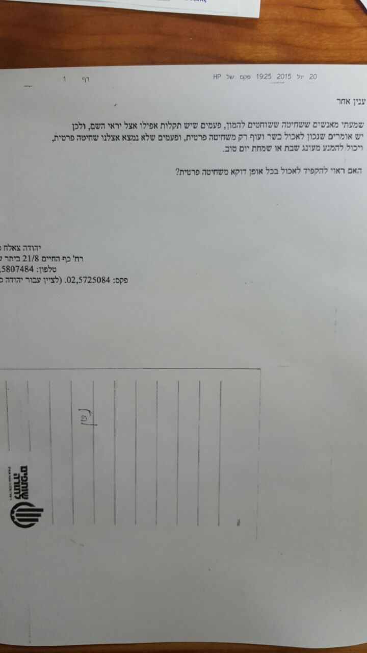 תשובתו של הרב קניבסקי לשאלה בנושא הבעיות בשחיטה