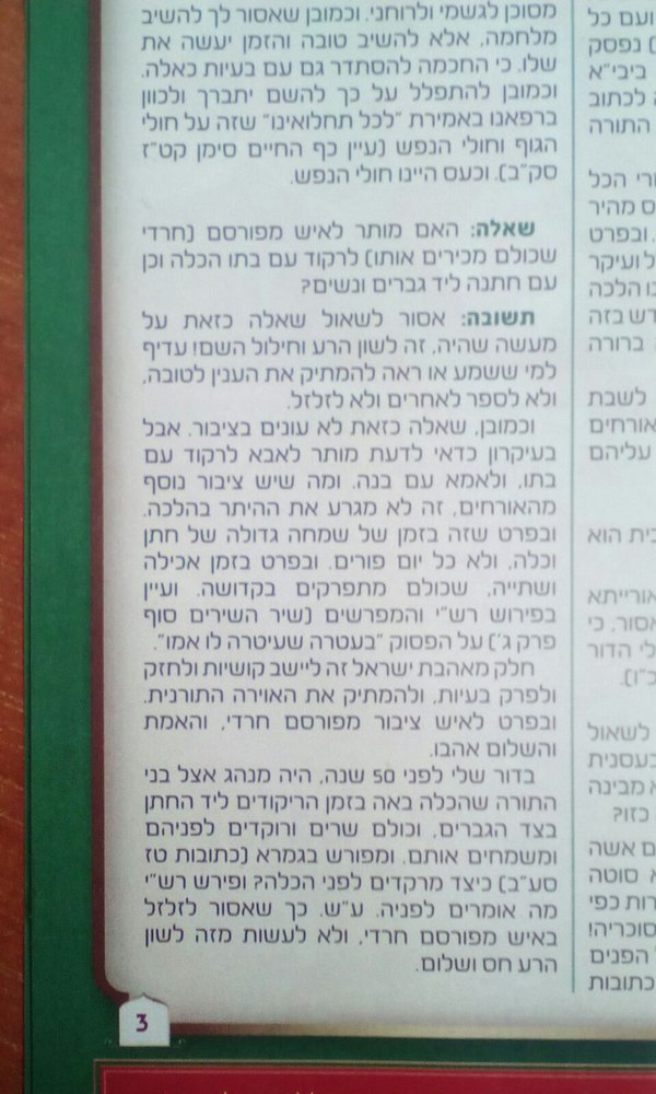 חיים רבי החרטטן בתשובה לשאלת בחור כיצד דארעי רקד בחתונה עם בתו לעיני כל.