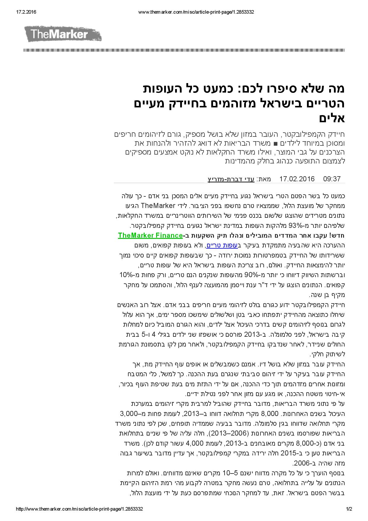 כך מפרסם היום אתר האינטרנט TheMarker עם הכותרת: "מה שלא סיפרו לכם: כמעט כל העופות הטריים בישראל מזוהמים בחיידק מעיים אלים".