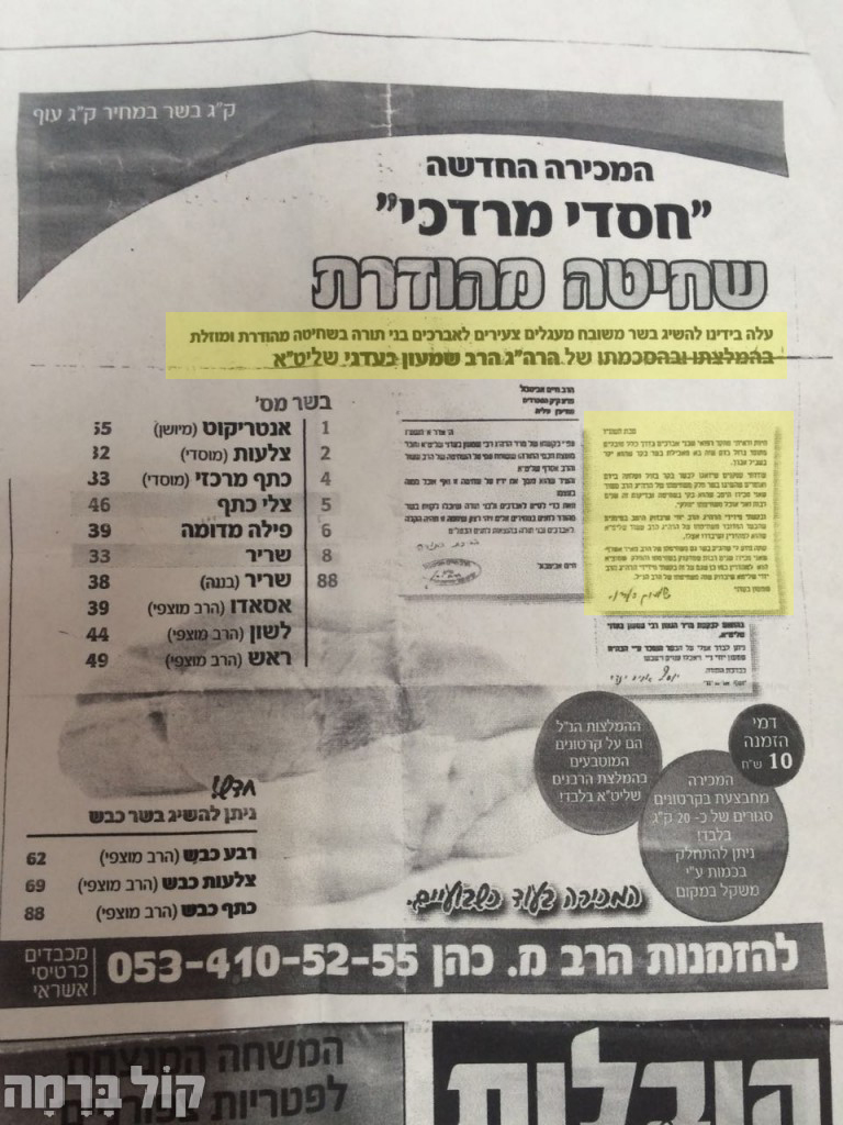 לאחרונה הופצו מודעות על מכירת "בשר משובח מעגלים צעירים לאברכים בני תורה בשחיטה מהודרת ומוזלת" (כפי שנכתב בעלון) בהמלצתו ובהסכמתו של שמעון בעדני.