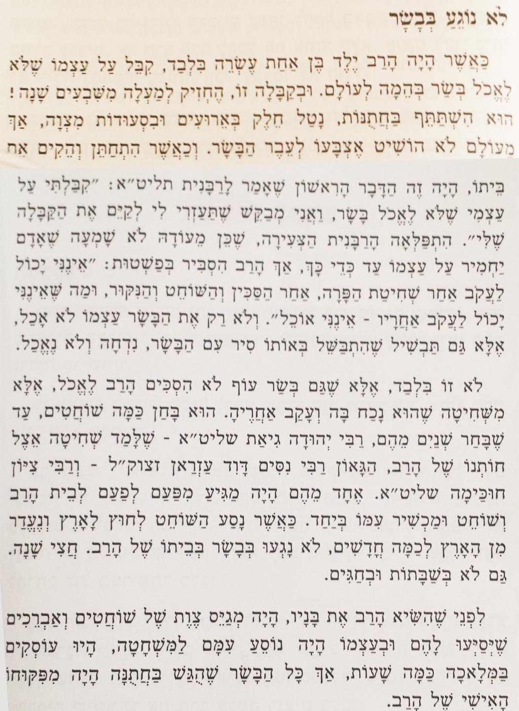 הקבלה שקיבל הרב מרדכי אליהו זצ"ל לא רק שלא לאכול בשר, אלא גם עוף - אלא רק משחיטה שנכח בה ועקב אחריה.