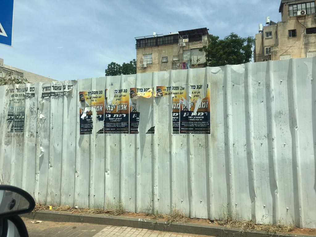 תלישת מודעות ברמת גן לקראת ההרצאה ביום ראשון הקרוב.