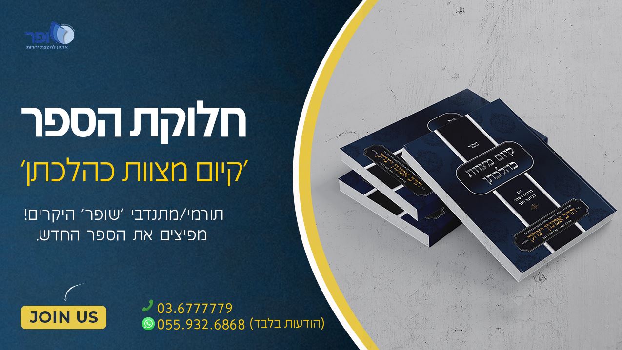 תורמי ומתנדבי 'שופר' הנכבדים הע"י - מתגייסים בהמוניהם להפצת הספר החדש: 'קיום מצוות כהלכתן' ברחבי הארץ הקדושה!