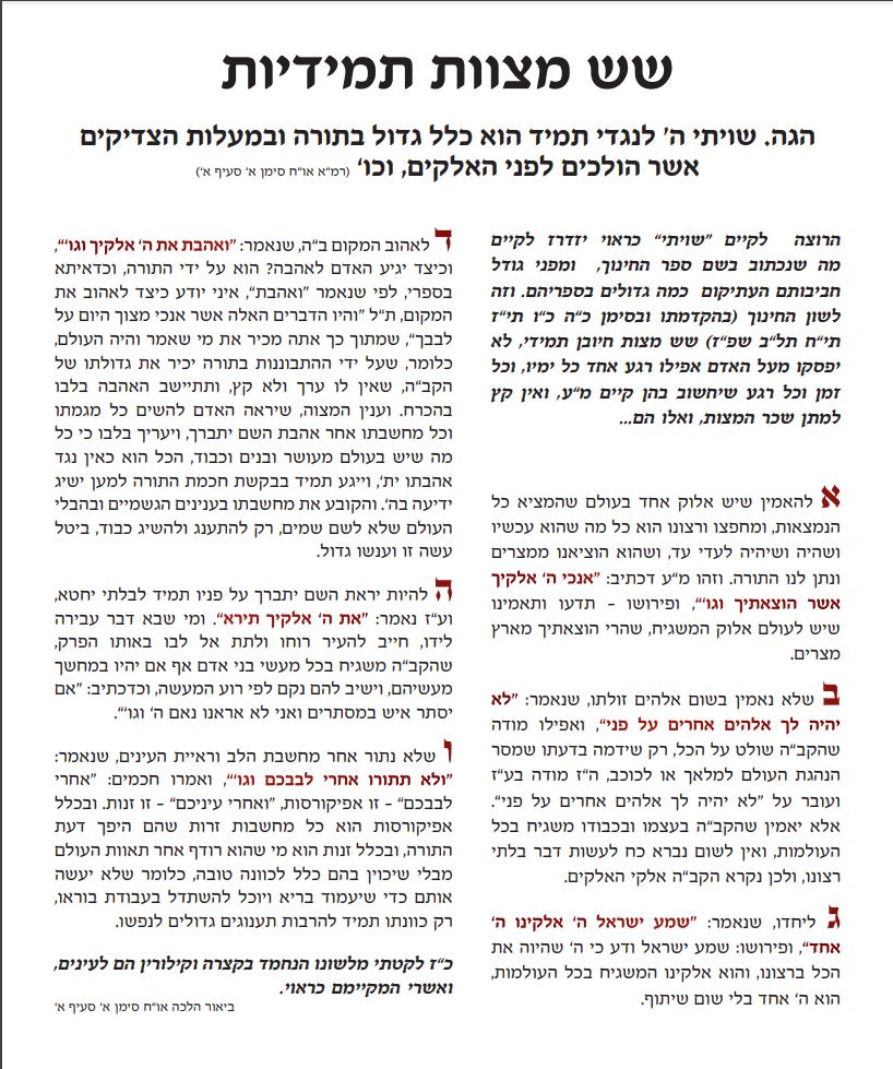 ב"ה מצ"ב דף ובו פירוט ה-6 מצוות תמידיות - להורדה לחץ כאן