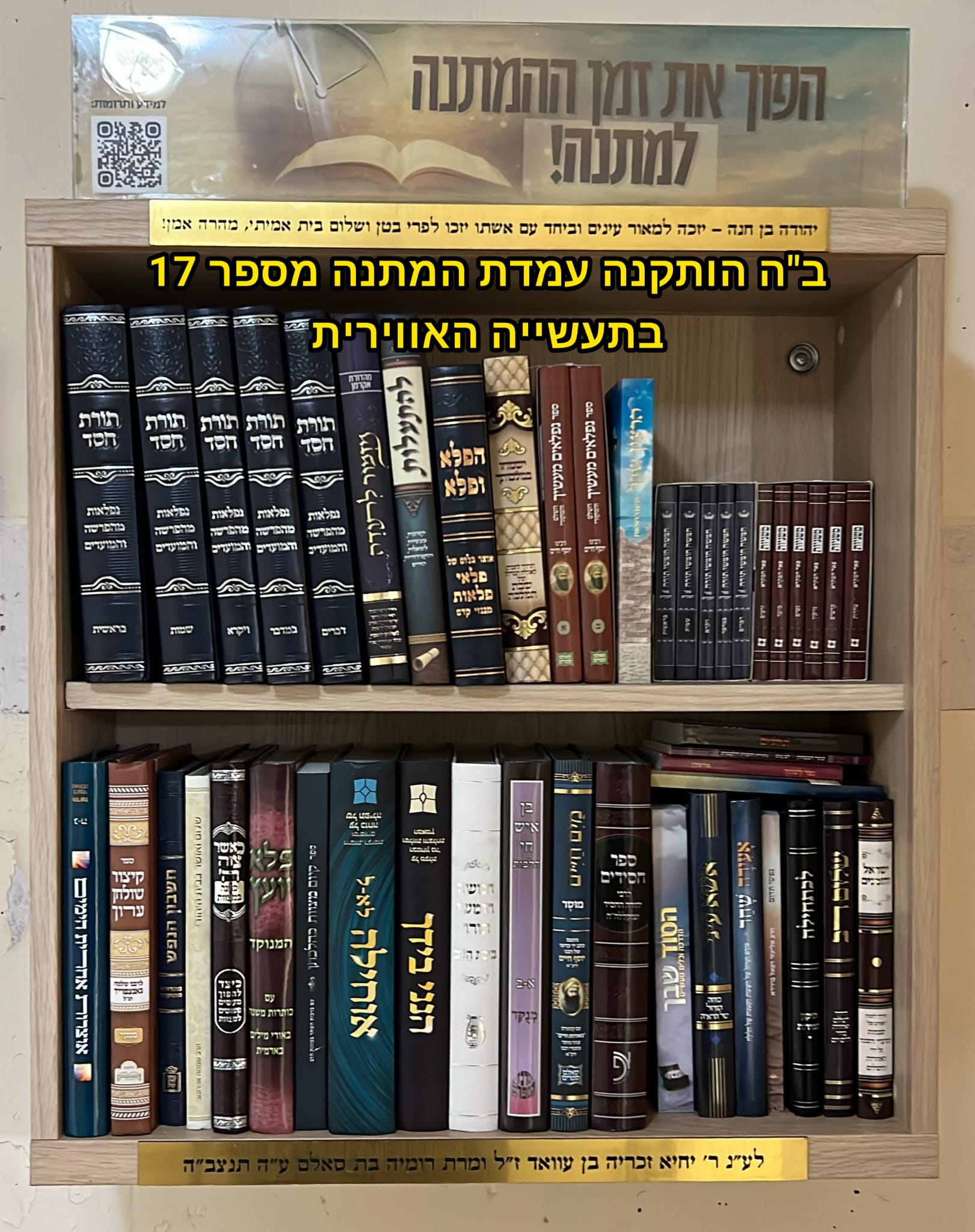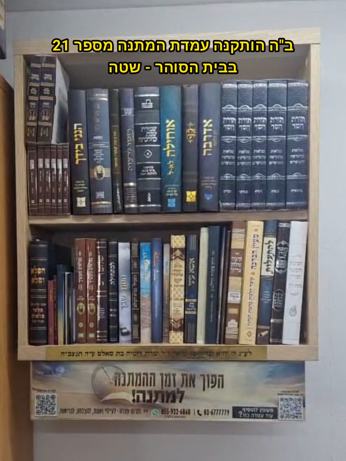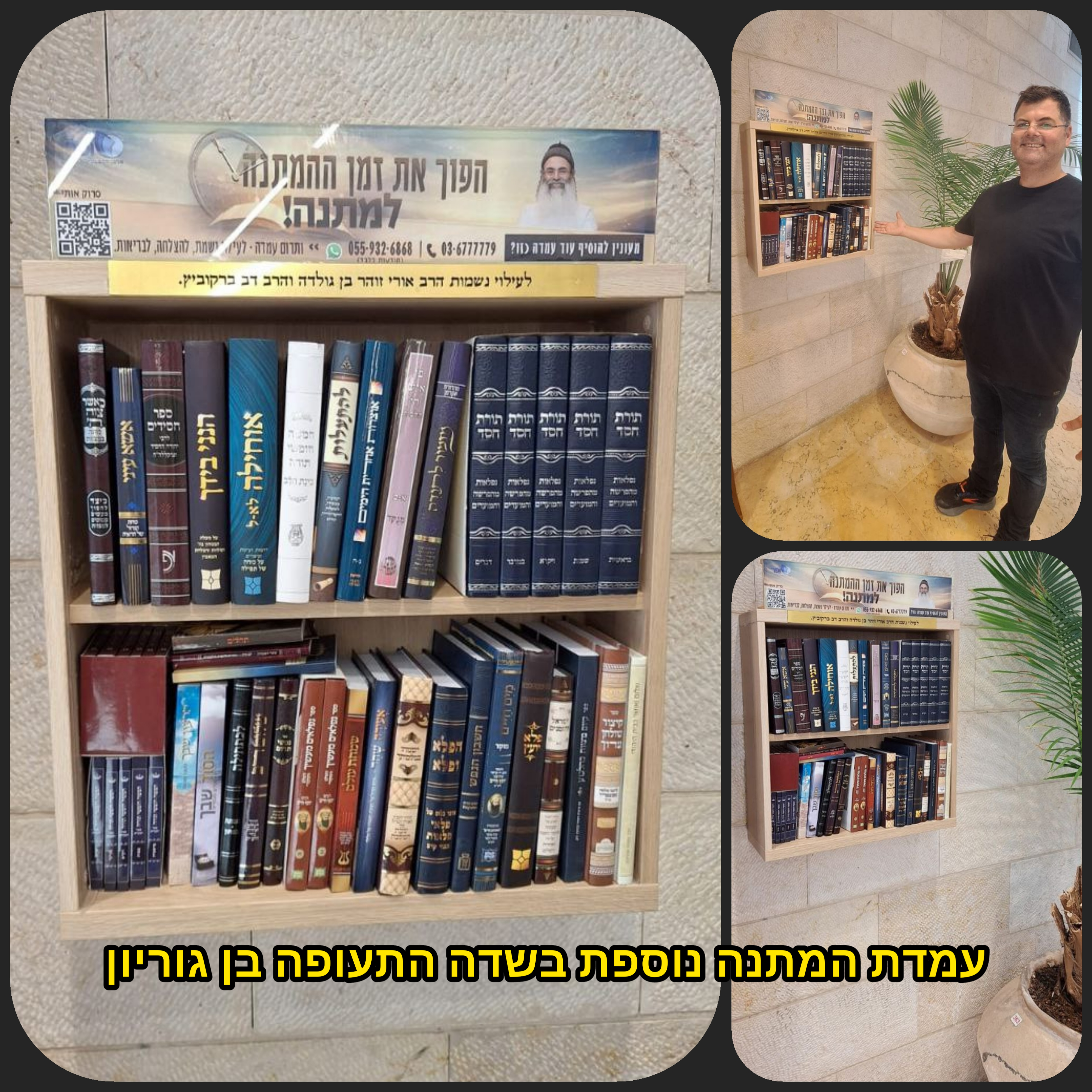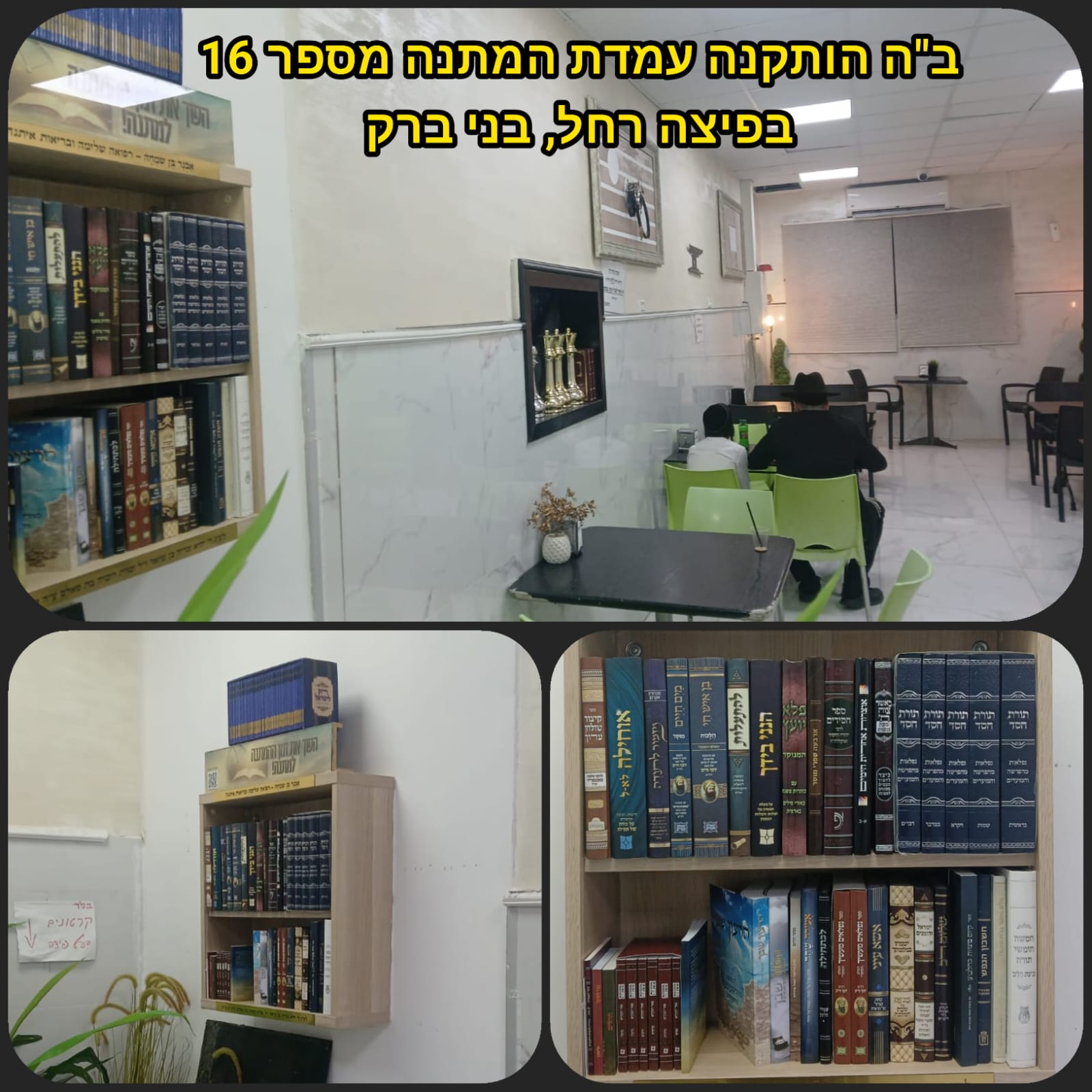 בעזהשי"ת ספריות לימוד מהודרות יוקמו בעמדות המתנה ברחבי הארץ, ובהן עשרות ספרים נבחרים בנושאי מוסר, אמונה, חיזוק, הלכה והשקפה.