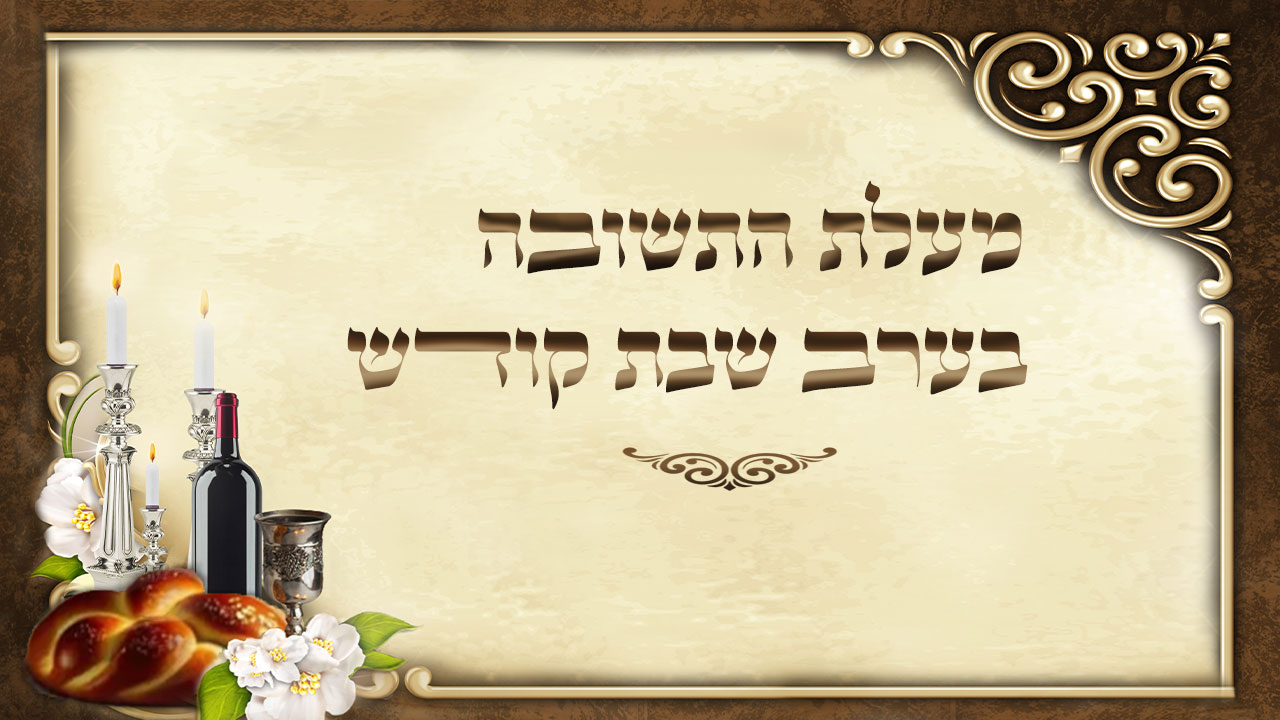 בְּכָל עֶרֶב שַׁבָּת כְּדַאי לָאָדָם לַעֲצֹר, לְהַרְהֵר וּלְפַשְׁפֵּשׁ בְּמַעֲשָׂיו. עֶרֶב שַׁבָּת הוּא שַׁעַר הַכְּנִיסָה לְעוֹלָם אַחֵר – לְשַׁבָּת הַמַּלְכָּה, לַנְּשָׁמָה הַיְּתֵרָה, לִמְנוּחָה שֶׁל הַגּוּף וְהַנֶּפֶשׁ גַּם יַחַד.
