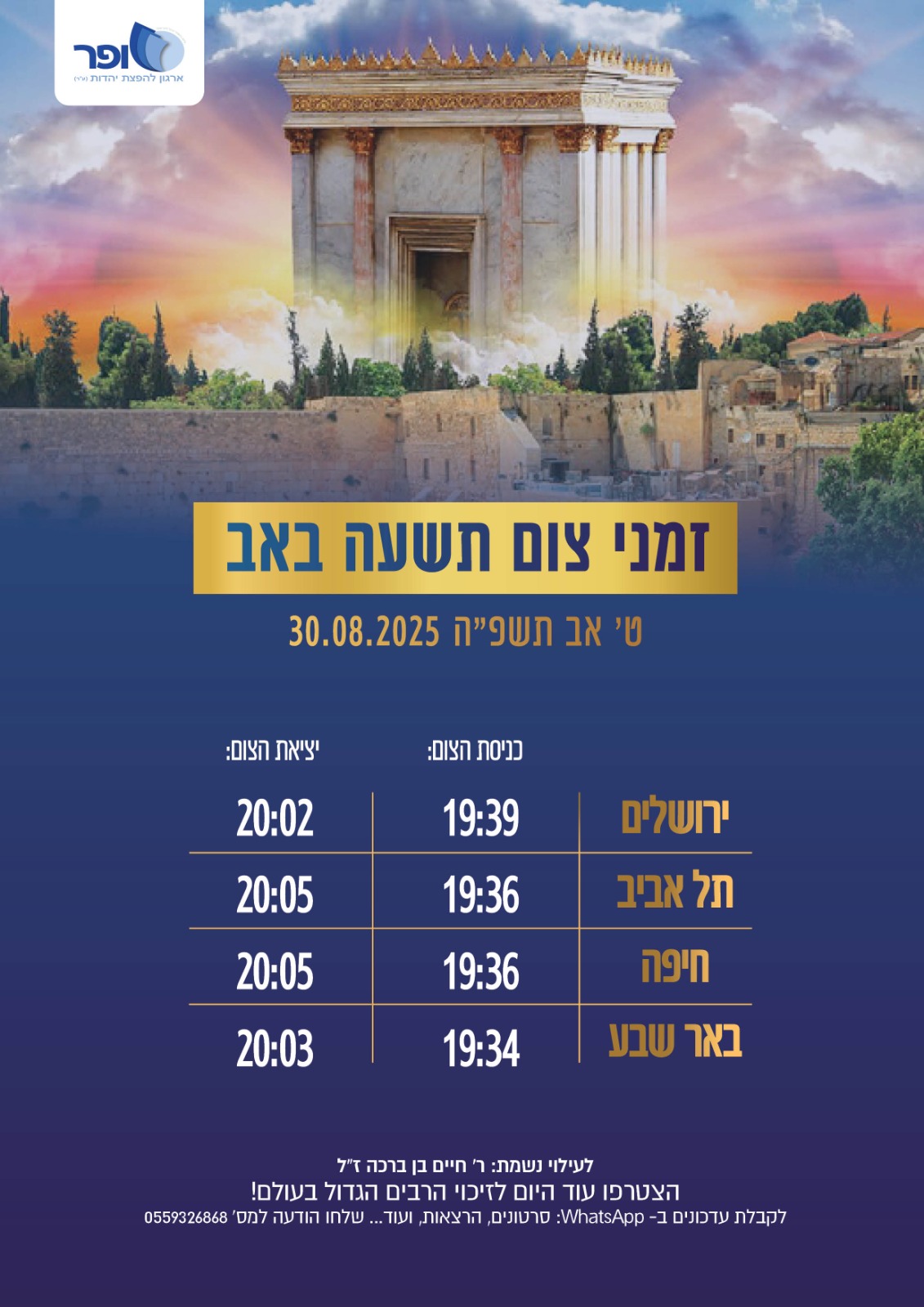 פורסם בתאריך: 31.07.2025, 14:32 • מערכת שופר