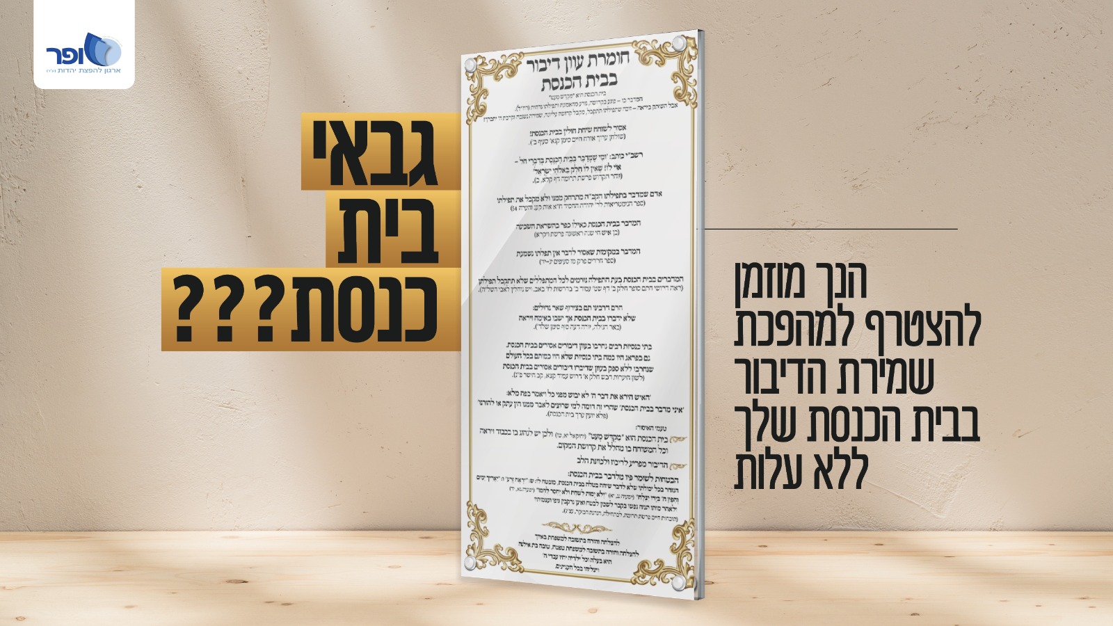 כל גבאי המעוניין להתקין שלט בבית הכנסת שבאחריותו – מוזמן לפנות אלינו בהקדם, ולהיות שותף במיזם של זיכוי הרבים והאדרת שם שמים.