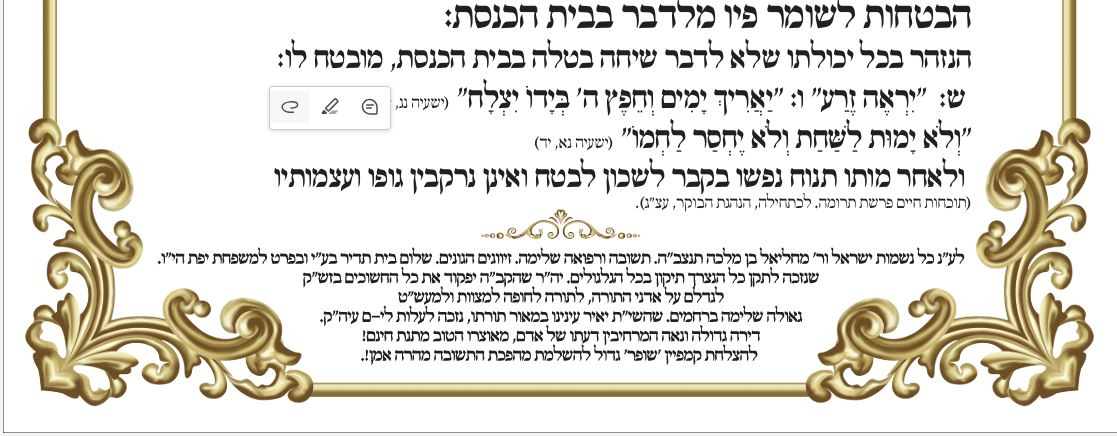 [נ.ב. כך גם בשלט חומרת עוון דיבור בבית הכנסת - שיצא לאור בס"ד ע"י 'שופר' ארגון להפצת יהדות ע.ר.]
