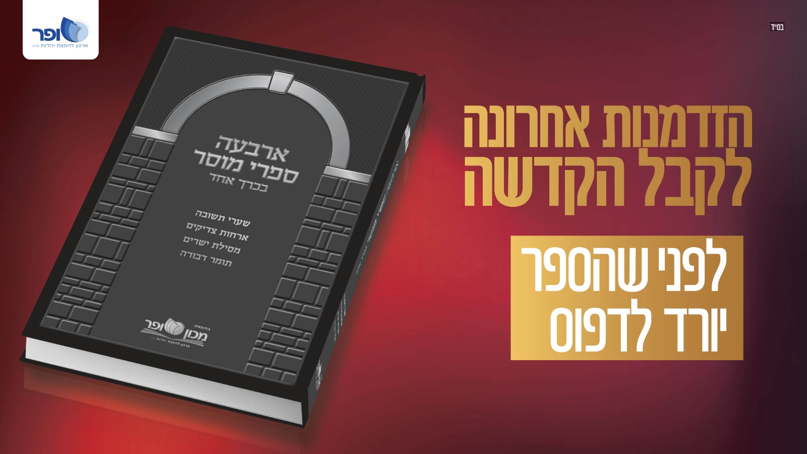 לכתבה הקודמת: הזדמנות אחרונה לקבל הקדשה - לפני שהספר ירד לדפוס - לחץ כאן