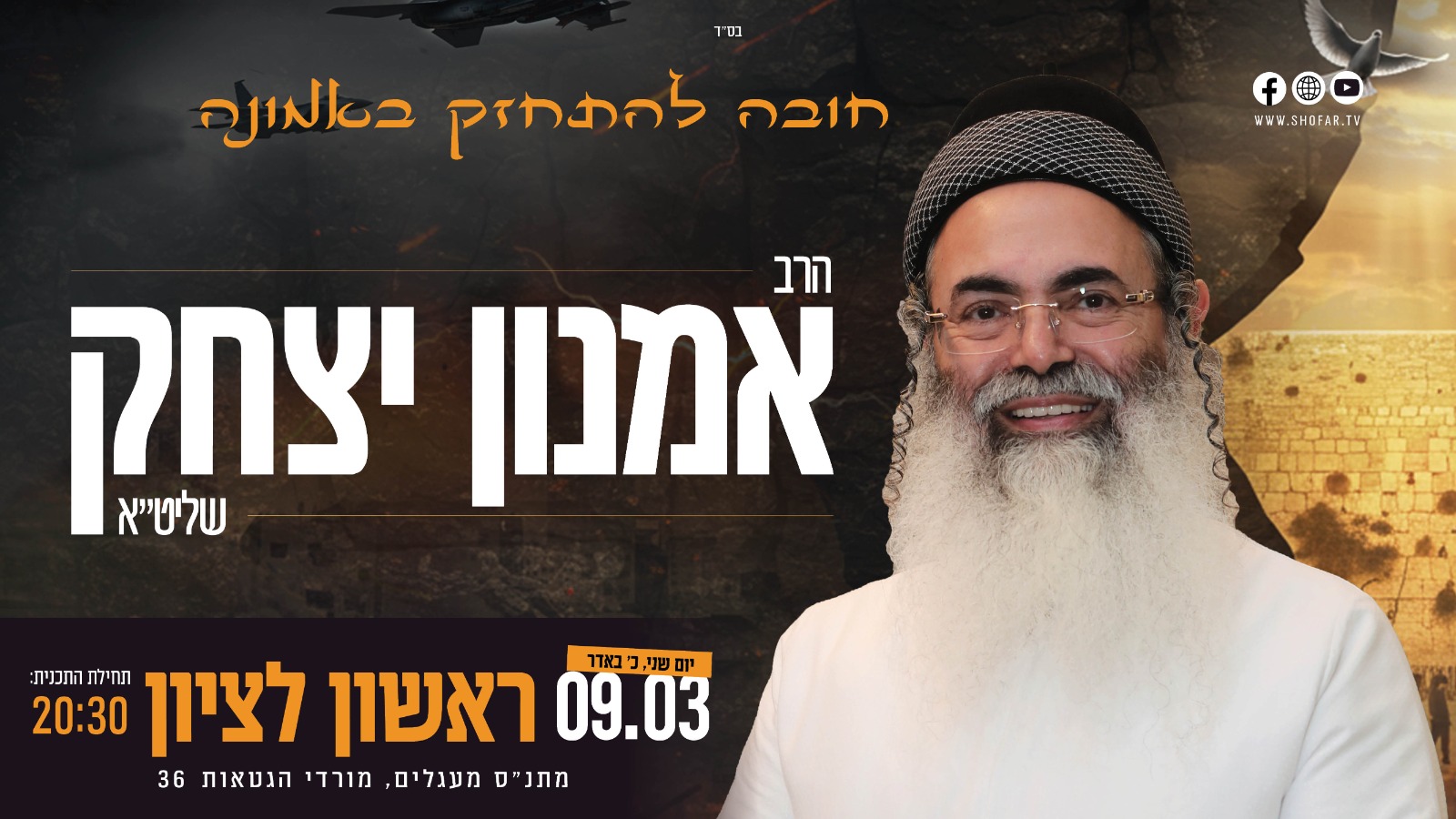 בעקבות המצב הבטחוני - ההרצאה בראשון לציון נדחית בשורות טובות!