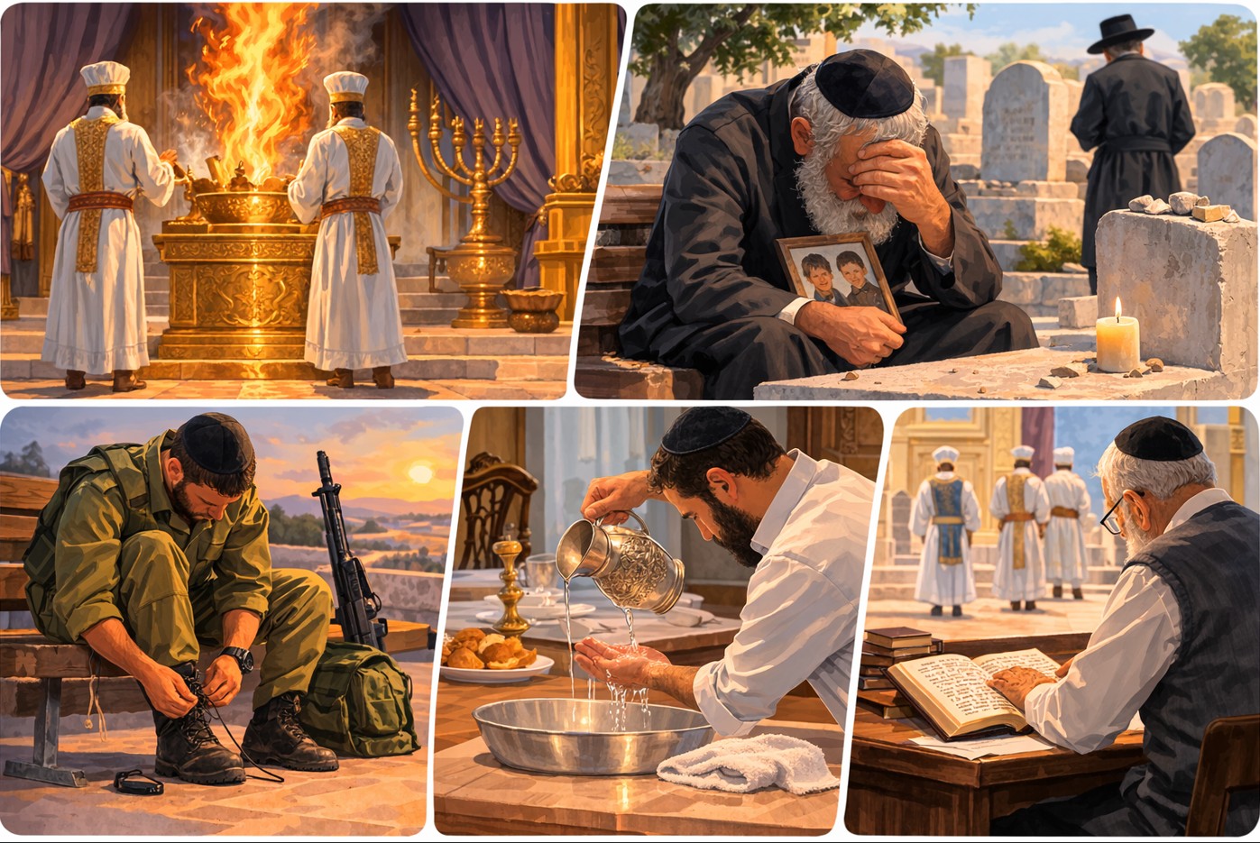 בני אהרן, הקדושים והנשגבים, היו גדושים ומלאים בחיי טהרה וקרבת הבורא, מצוות ומעשים טובים ולימוד תורה ללא הרף, אולם התורה העידה עליהם כי בגין מצות הקרבת דם הקרבנות בלבד, אשר נתקיימה על ידם בהידור ובשלימות, עד כדי כך שהתורה העידה עליהם שקיימוה, ראויים הם שכל בית ישראל יבכו את מותם.