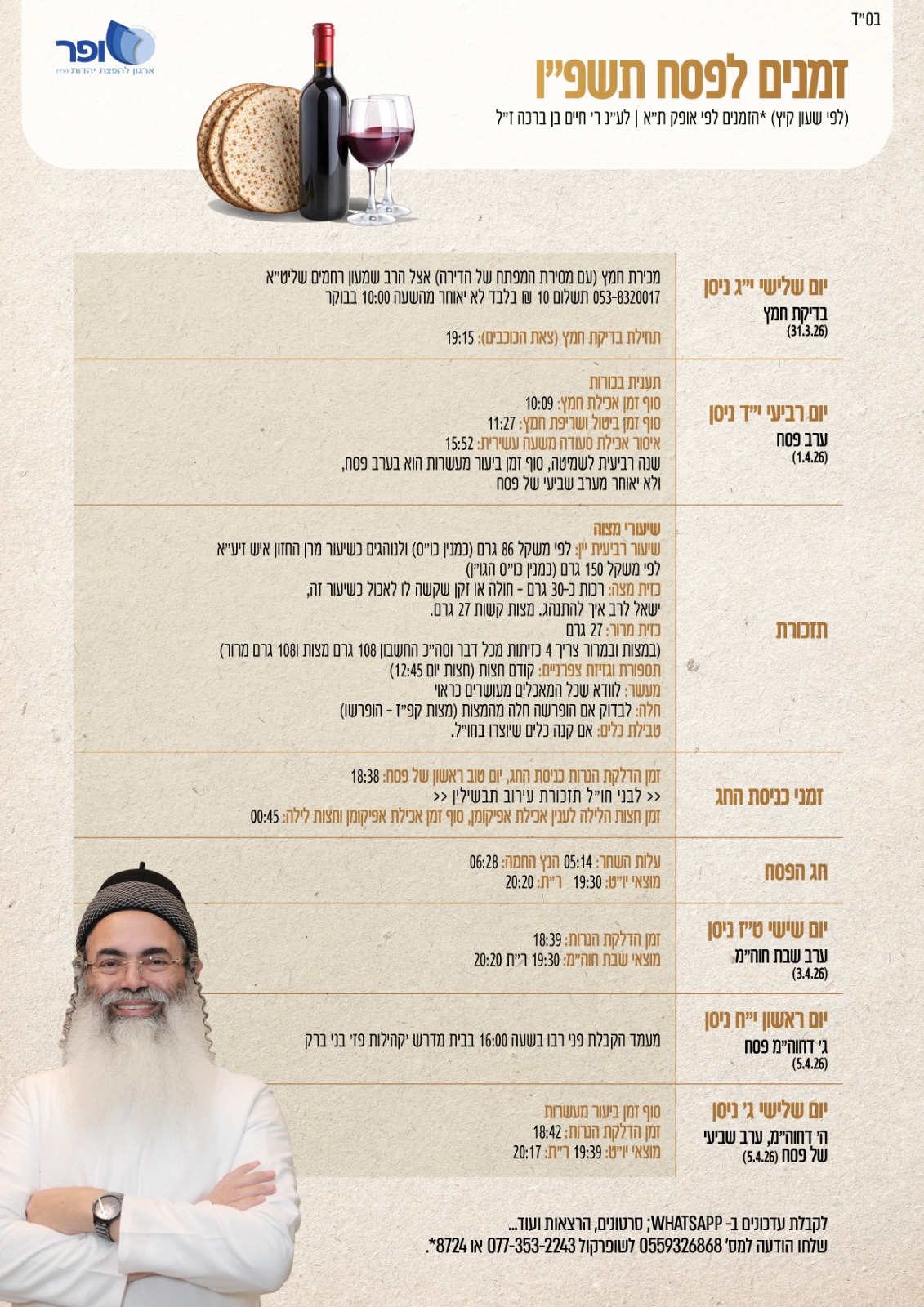 זמנים לפסח תשפ"ו - להורדה לחץ כאן