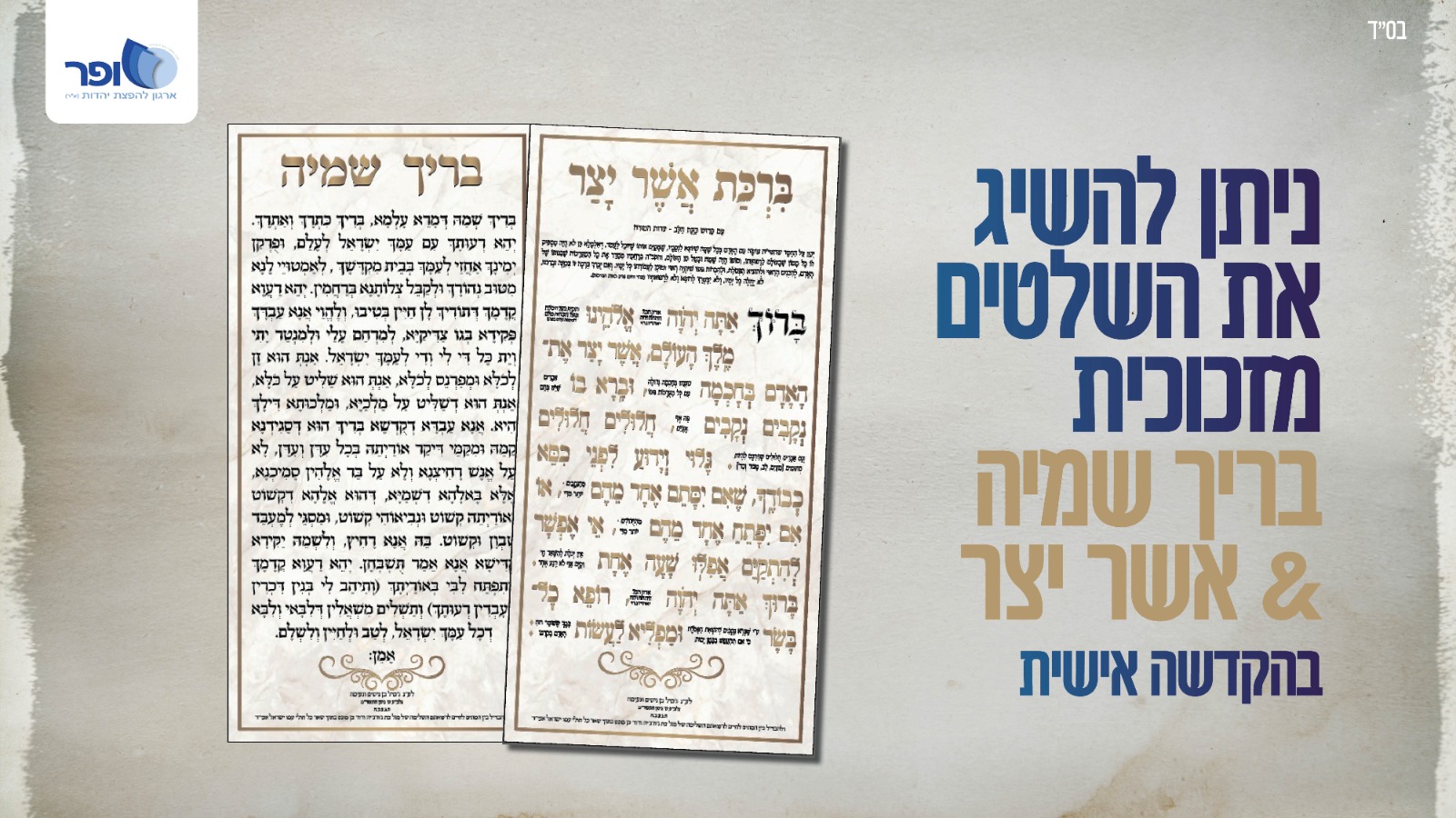 לתרומת ישירה דרך אתר שופר לשלט אשר יצר - לחץ כאן.