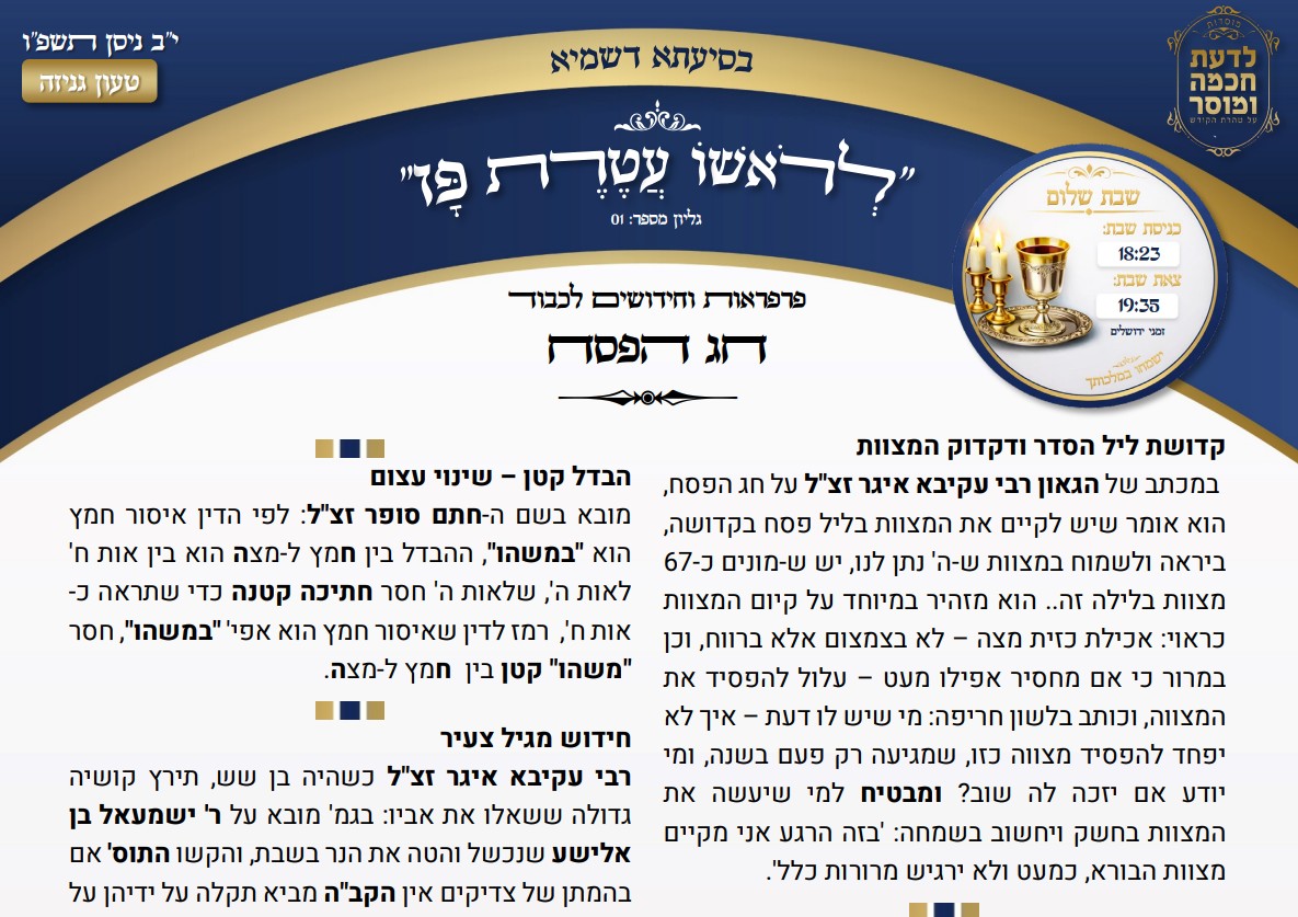 חדש! גליון 'לראשו עטרת פז' פרפראות וחידושים לחג הפסח