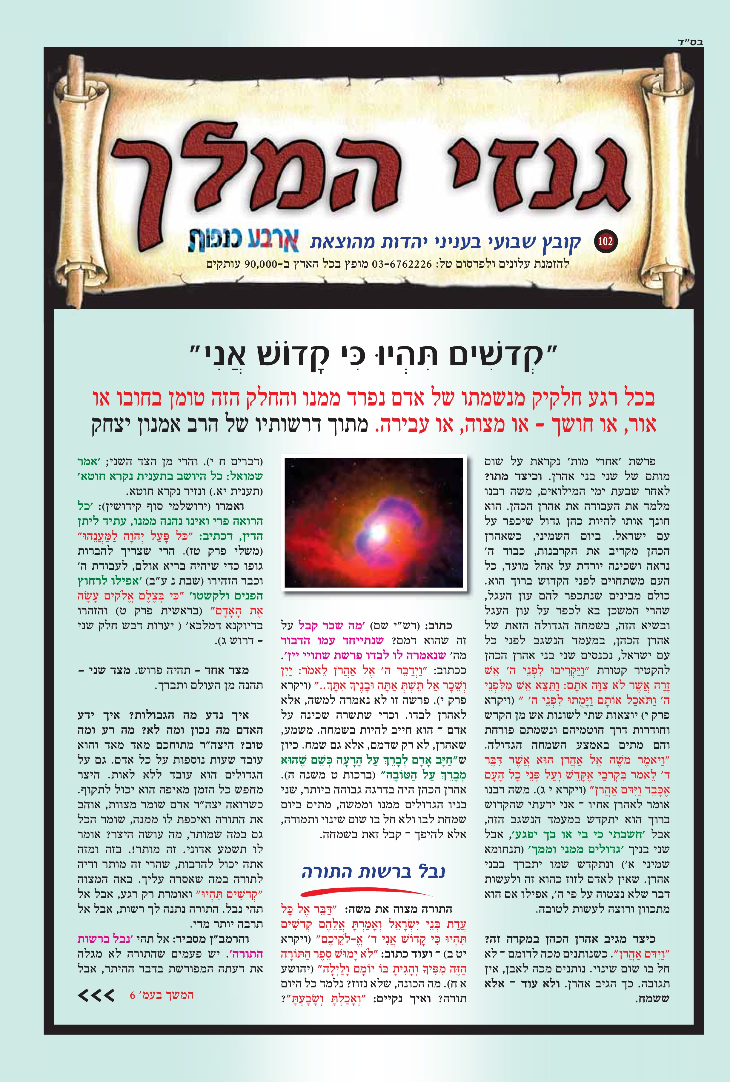 "קדושים תיהיו כי קדוש אני" בכל רגע חלקיק מנשמתו של אדם נפרד ממנו והחלק הזה טומן בחובו או אור, או חושך - או מצוה, או עבירה.