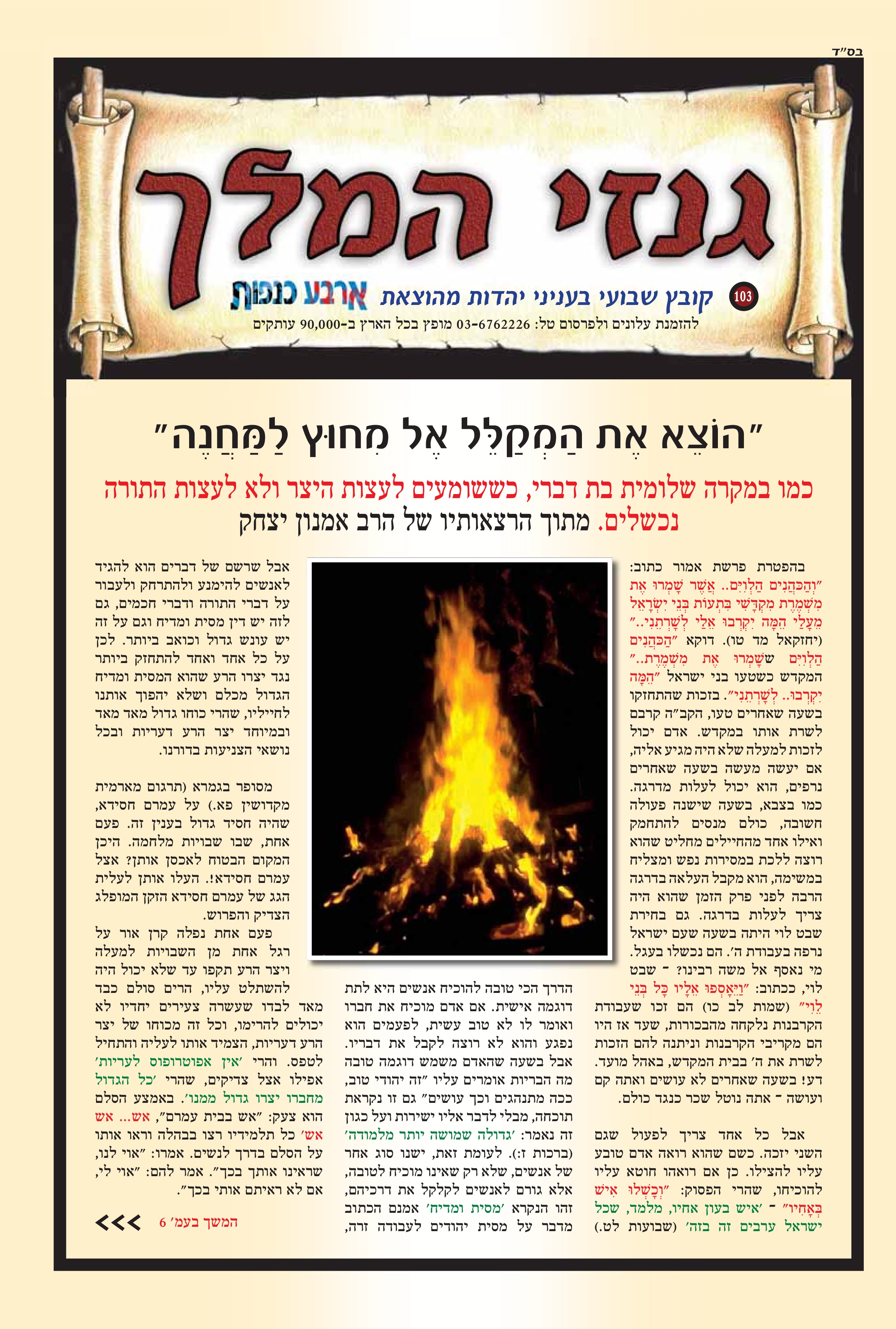"הוצא את המקלל מחוץ למחנה" כמו במקרה שלומית בת דברי, כששומעים לעצות היצר ולא לעצות התורה נכשלים