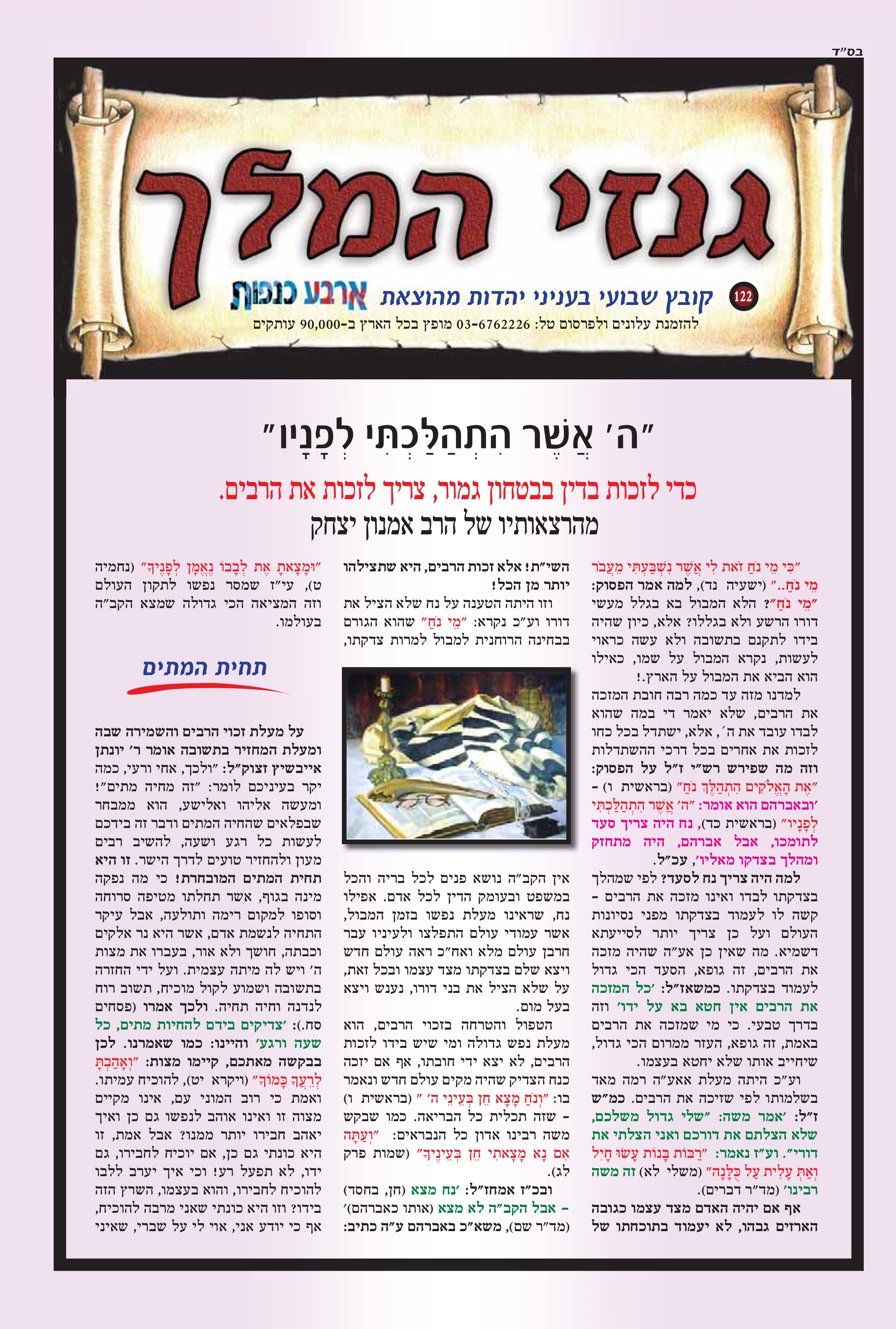 "ה' אשר התהלכתי לפני" כדי לזכות בדין בבטחון גמור, צריך לזכות את הרבים
