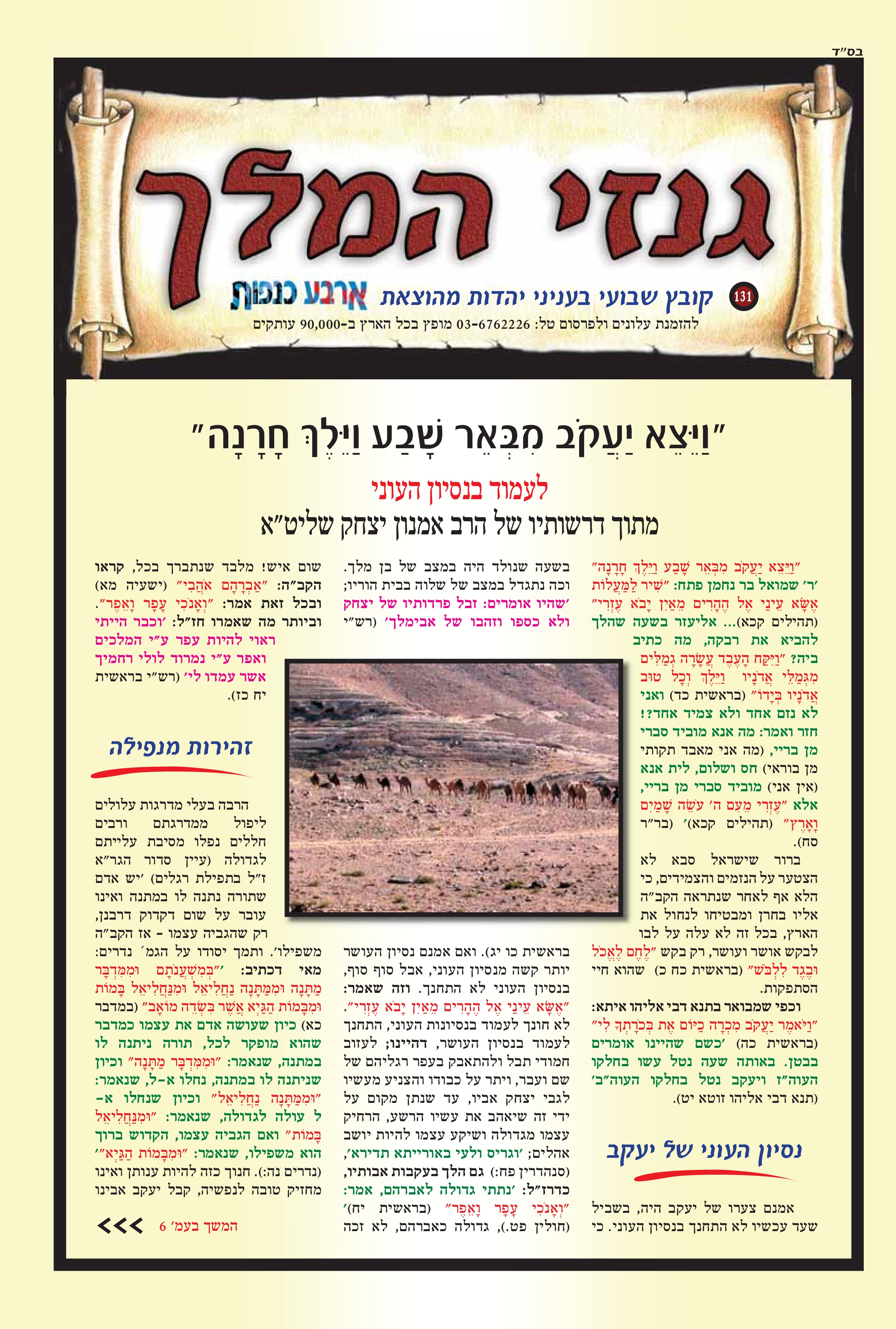 "ויצא יעקב מבאר שבע וילך חרנה" לעמוד בנסיון העוני