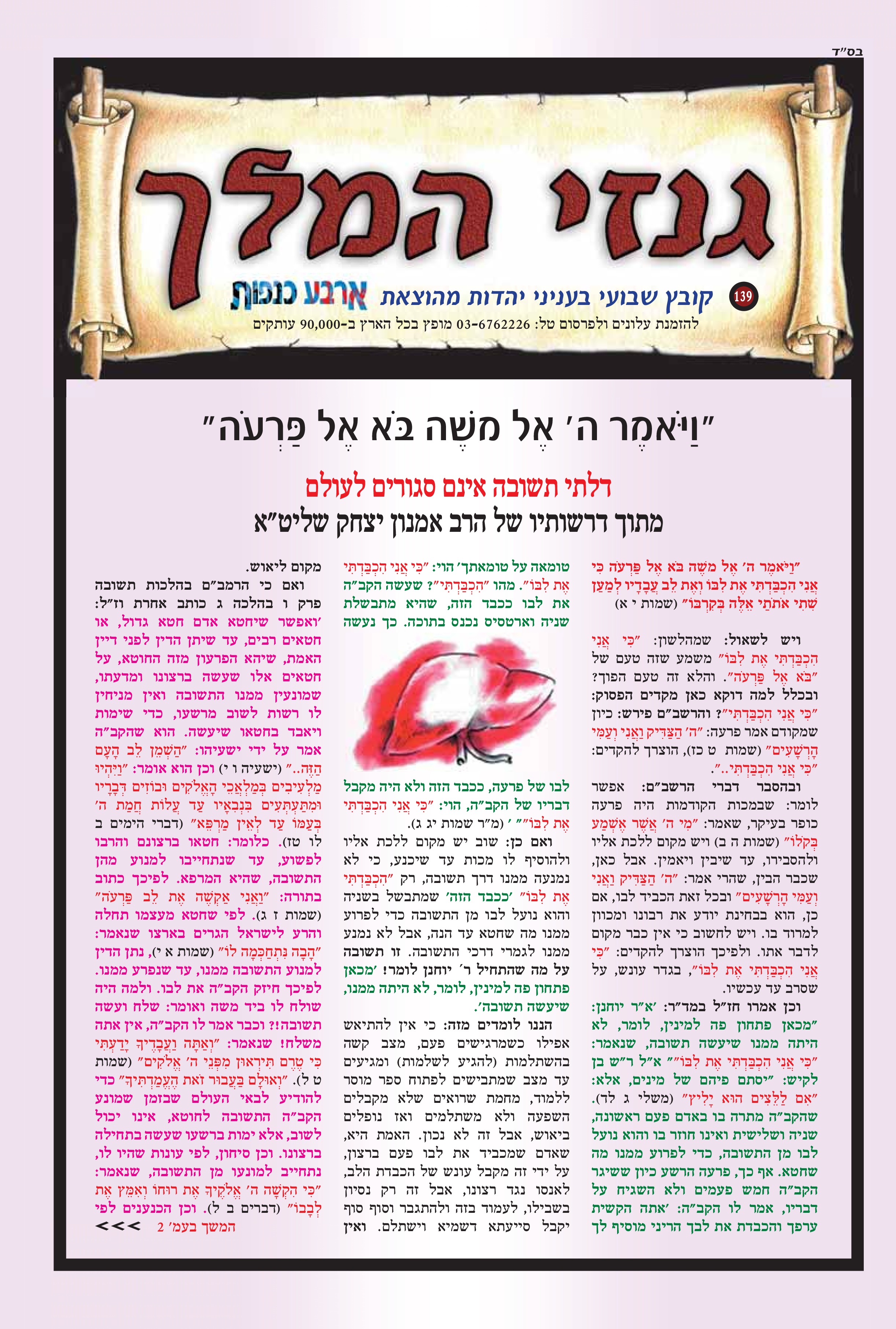 "ויאמר ה' אל משה בא אל פרעה" דלתי תשובה אינם סגורים לעולם