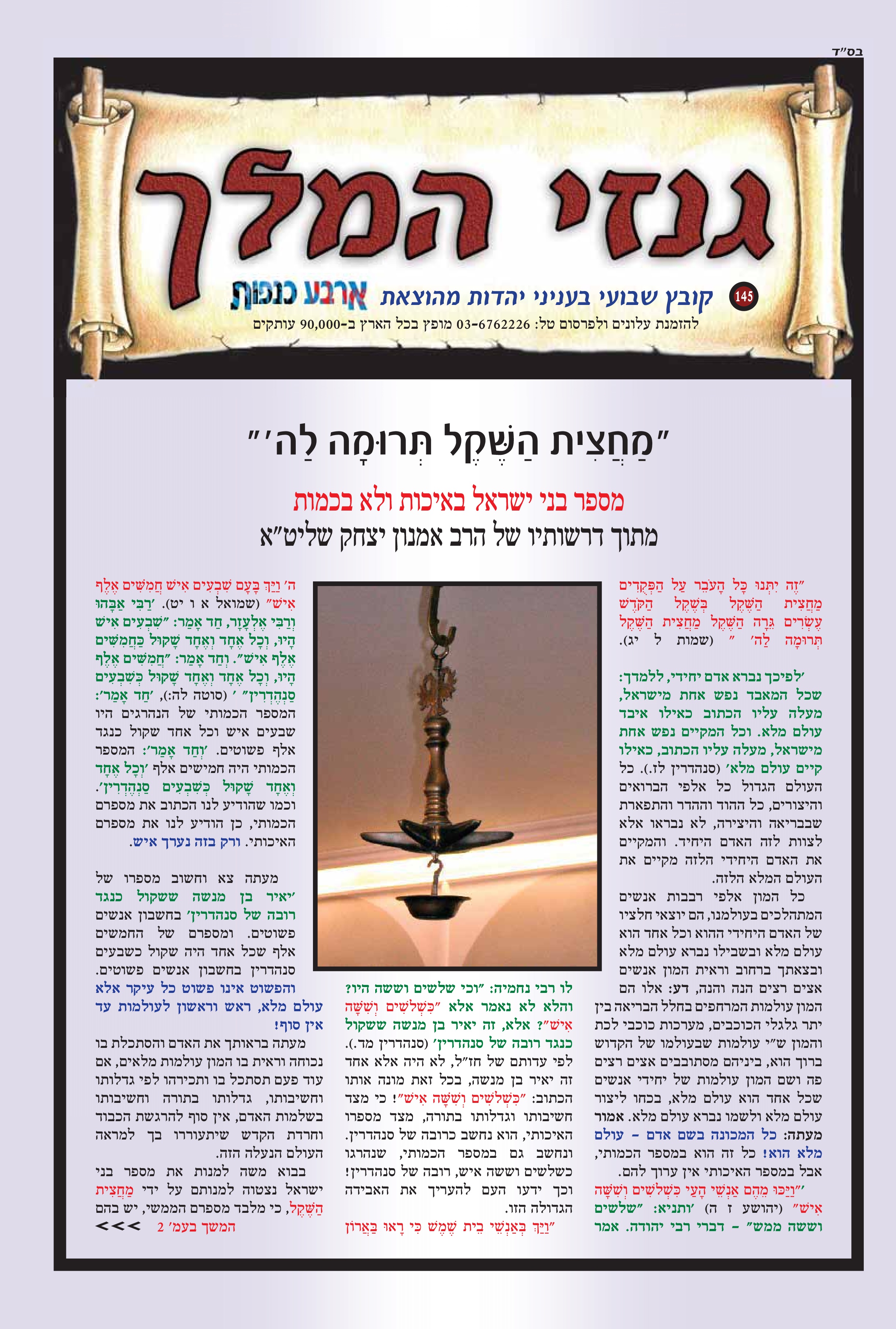 "מחצית השקל תרומה לה' " מספר בני ישראל באיכות ולא בכמות