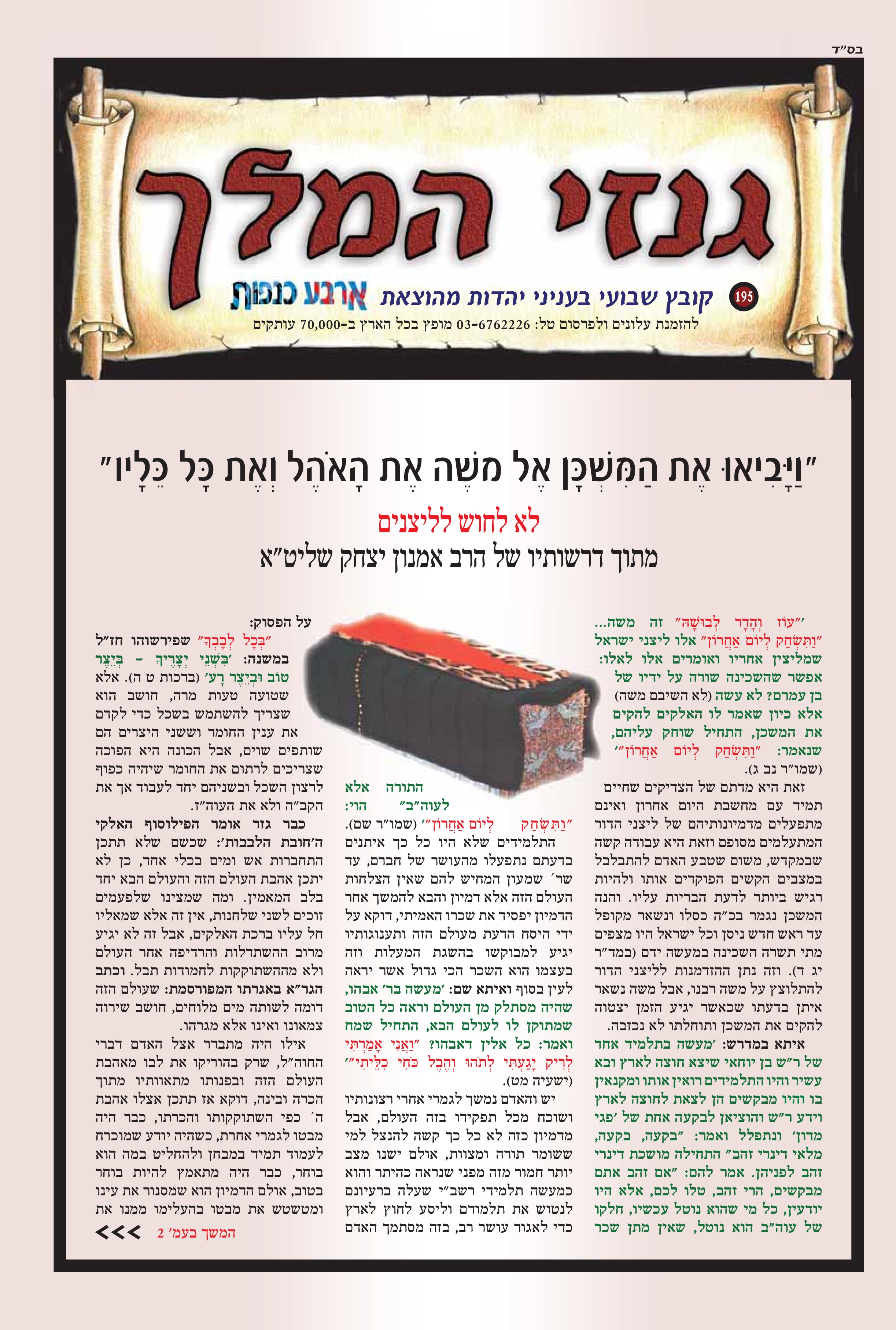 " ויביאו את המשכן אל משה את האהל ואת כל כליו" לא לחוש לליצנים