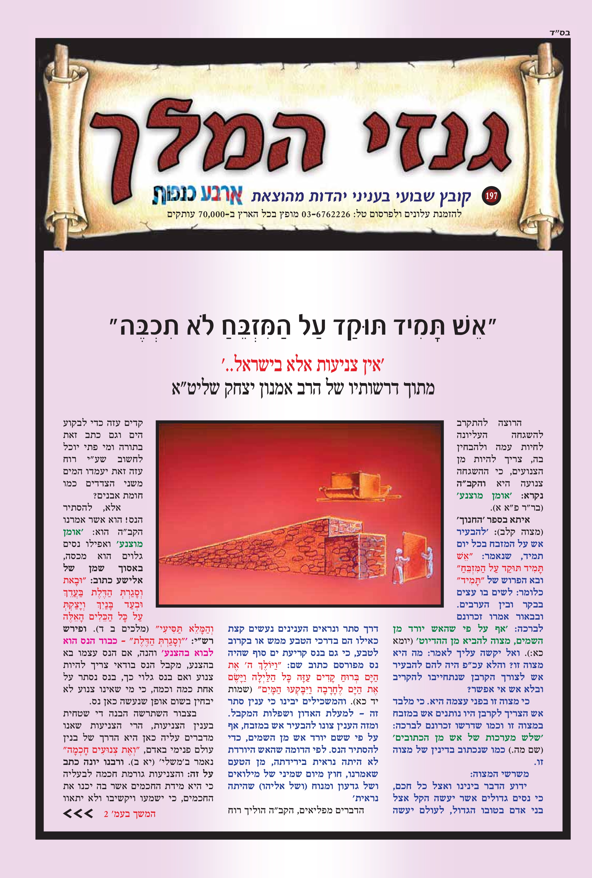 "אש תמיד תוקד על המזבח לא תכבה" 'אין צניעות אלה בישראל'...