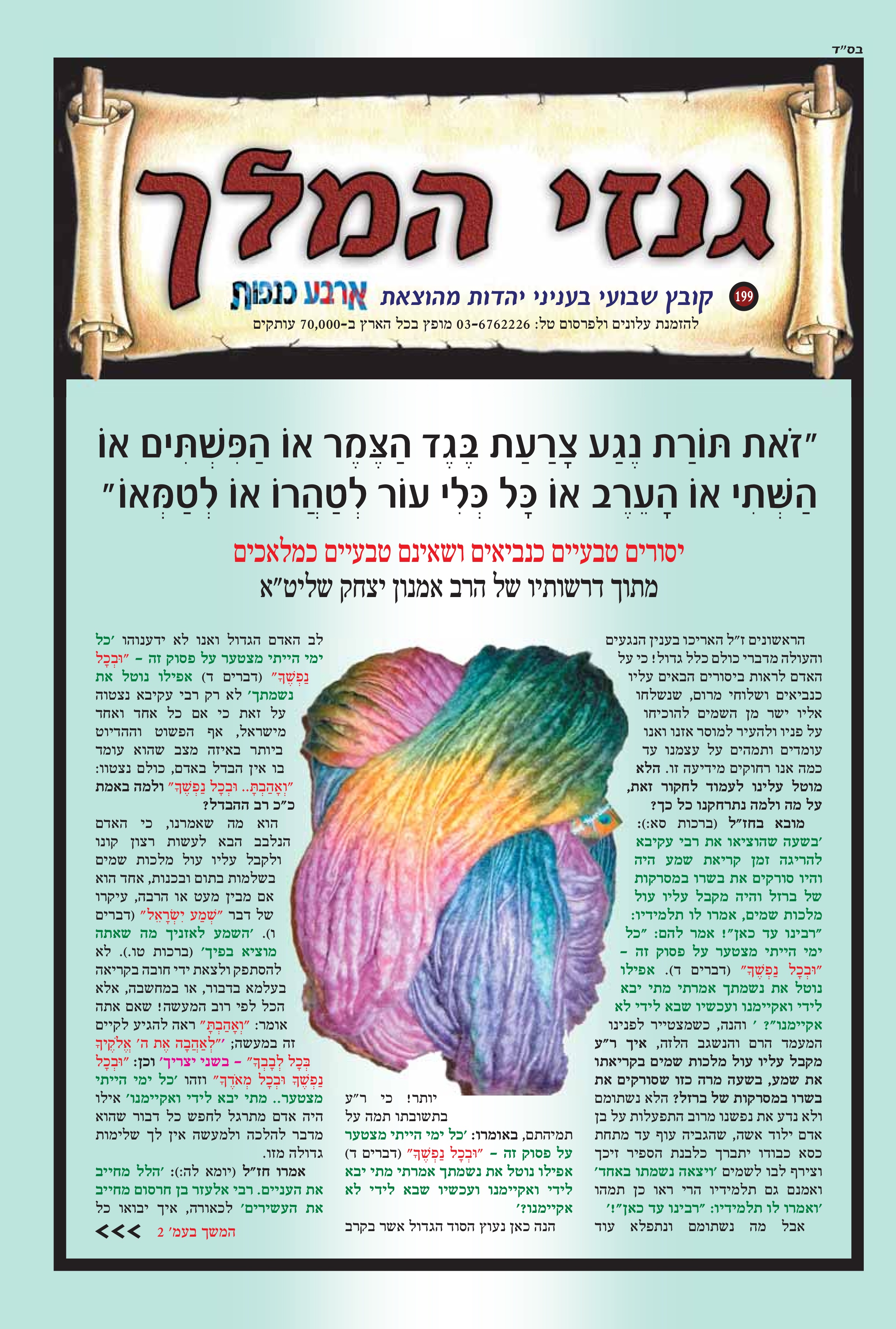 "זאת תורת נגע צרעת בגד הצמר או פשתים או השתי או הערב או כל כלי עור לטהרו או לטמאו" יסורים טבעיים כנביאים ושאינם טבעיים כמלאכים
