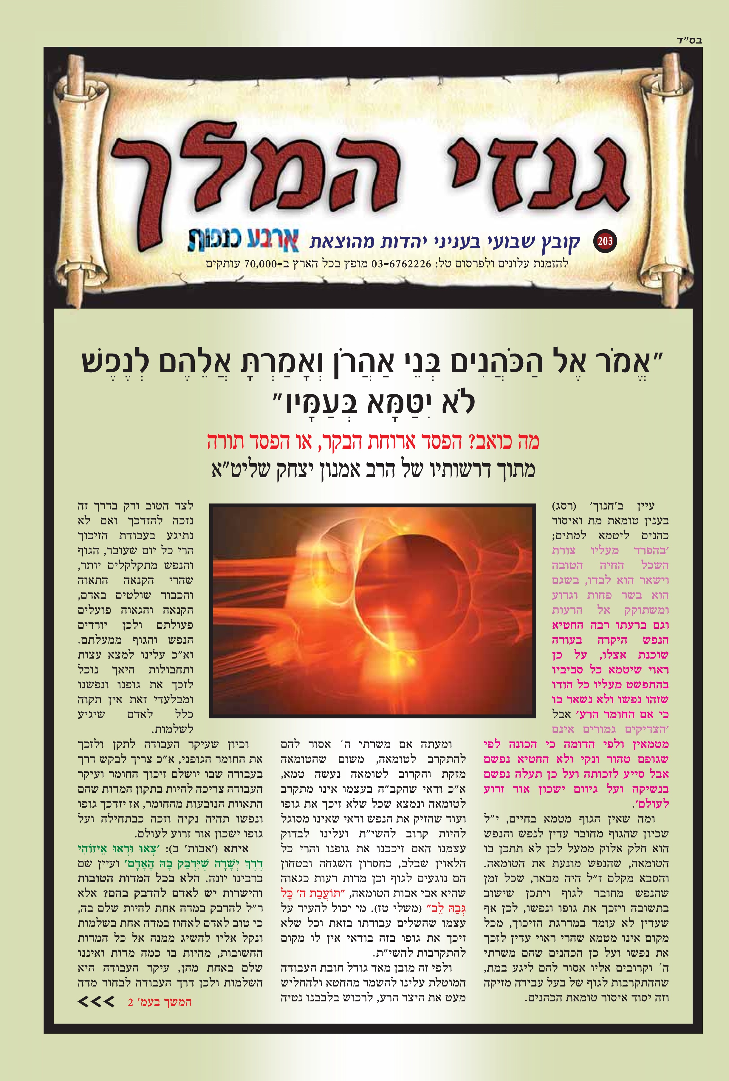 "אמר אל הכהנים בני אהרון ואמרת אלהם לנפש לא יטמא בעמיו" מה כואב? הפסד ארוחת הבקר, או הפסד תורה