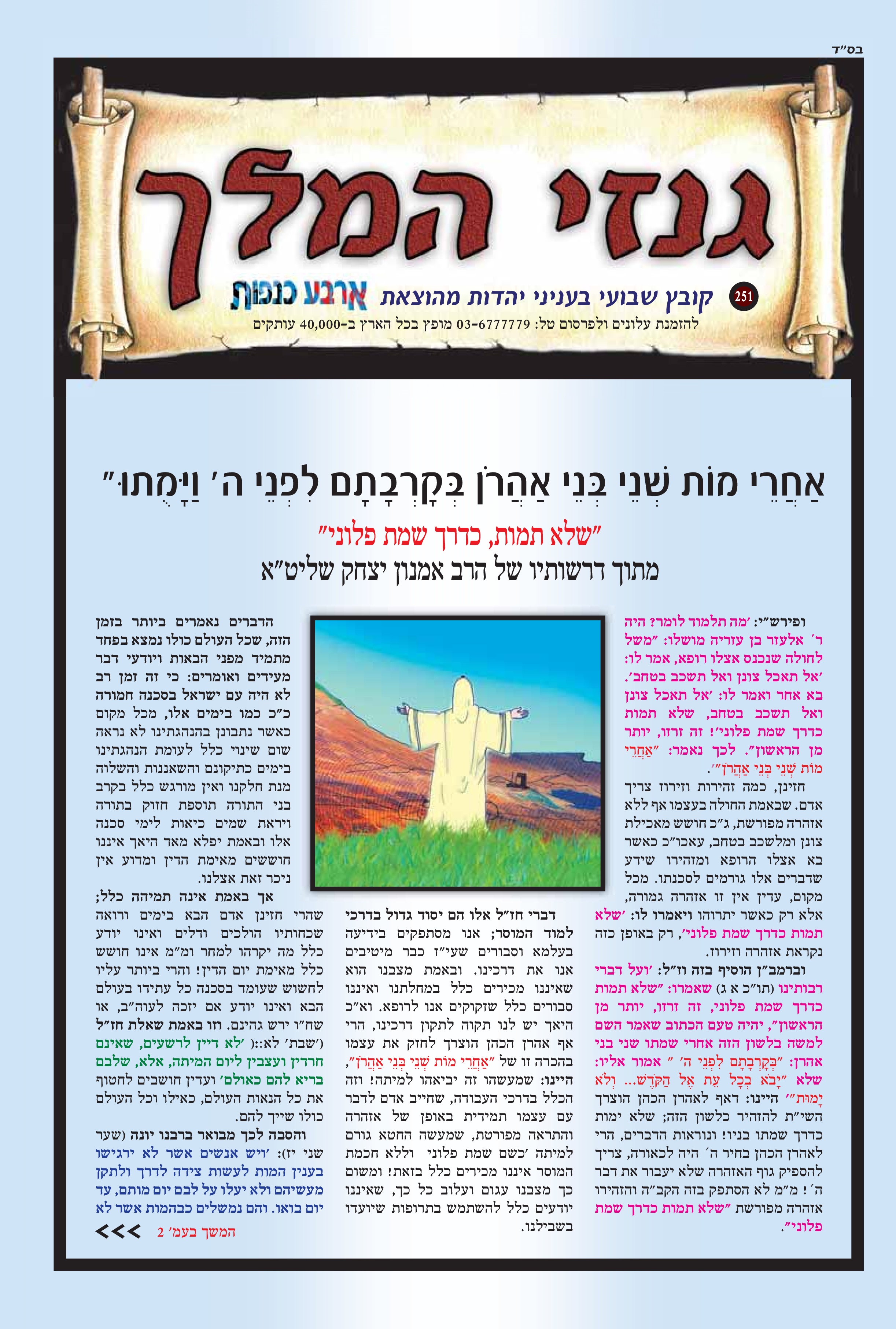 פרשת אחרי מות קדושים "מישאל ואליצפן וסתרי" 'הנה מיתתו ותשובתו באים כאחד ולכן לא יסרב'