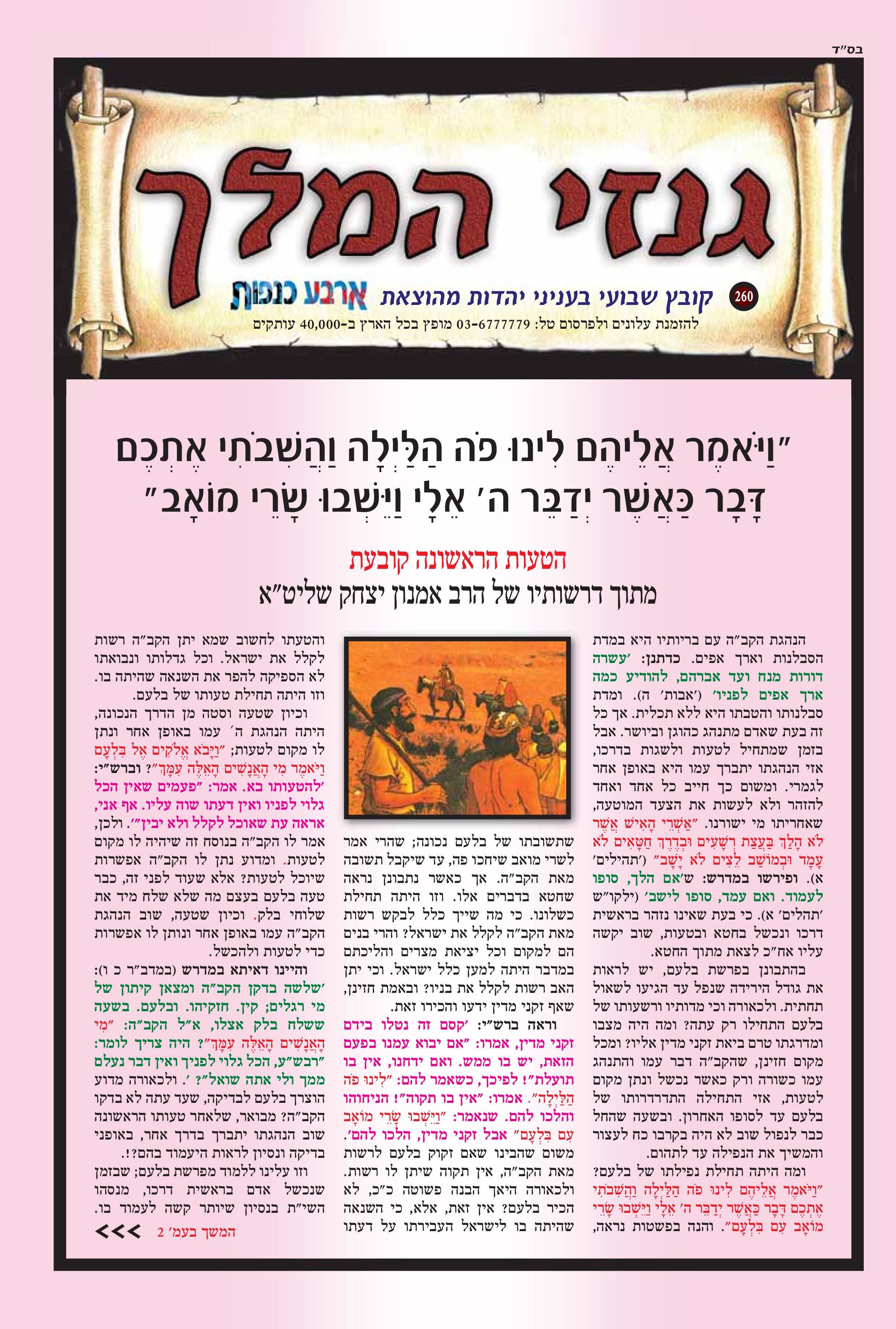 "ויאמר אליהם לינו פה הלילה והשבותי אתכם דבר כאשר ידבר ה' אלי וישבו שרי מואב" הטעות הראשונה קובעת