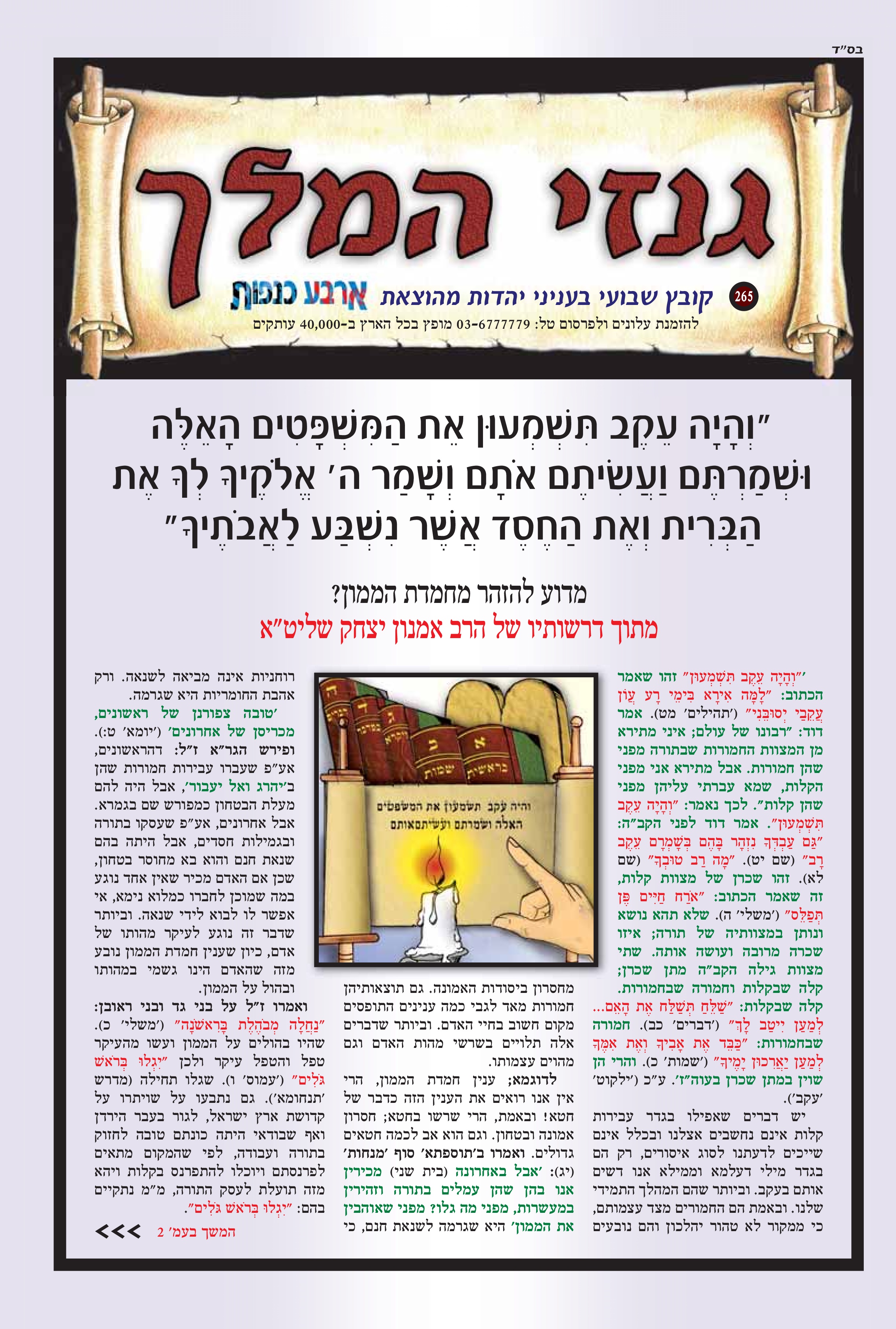 "והיה עקב תשמעון את המשפטים האלה ושמרתם ועשיתם אתם ושמר ה' אלוקיך לך את הברית ואת החסד אשר נשבע לאבותיך" מדוע להזהר מחמדת הממון?