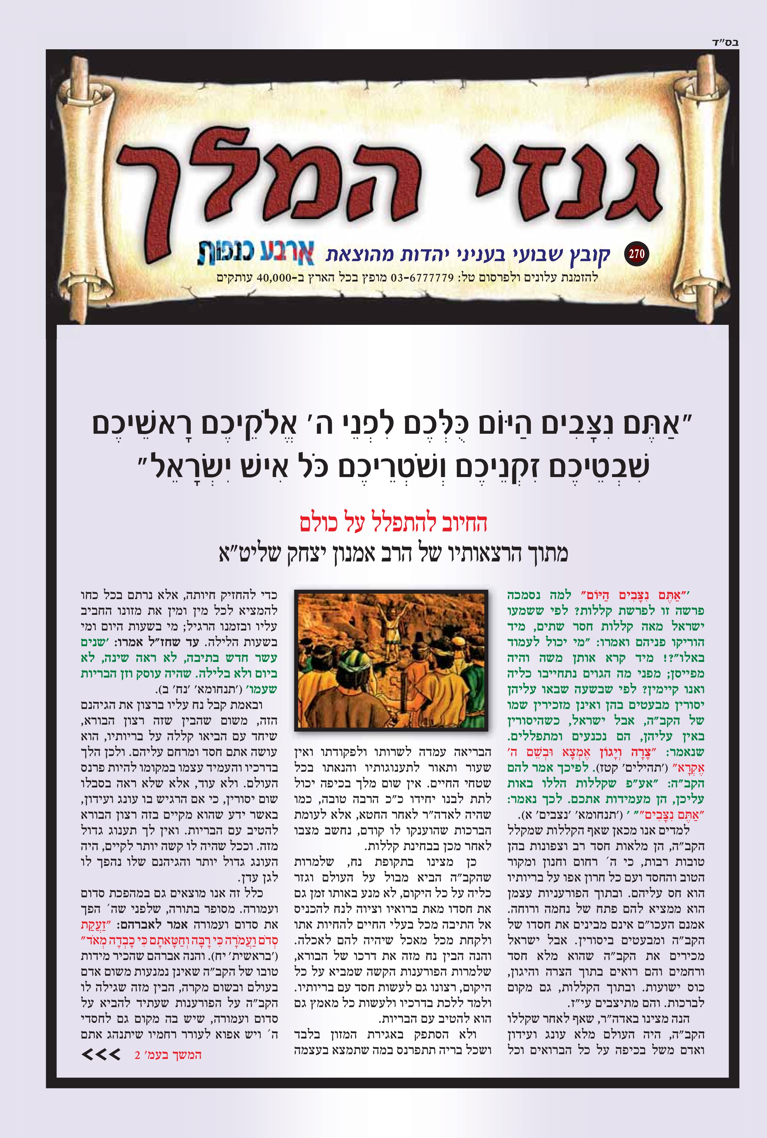 "אתם נצבים ביום כלכם לפני ה' אלקיכם ראשיכם שבטיכם זקניכם ושטריכם כל איש ישראל" החיוב להתפלל על כולם