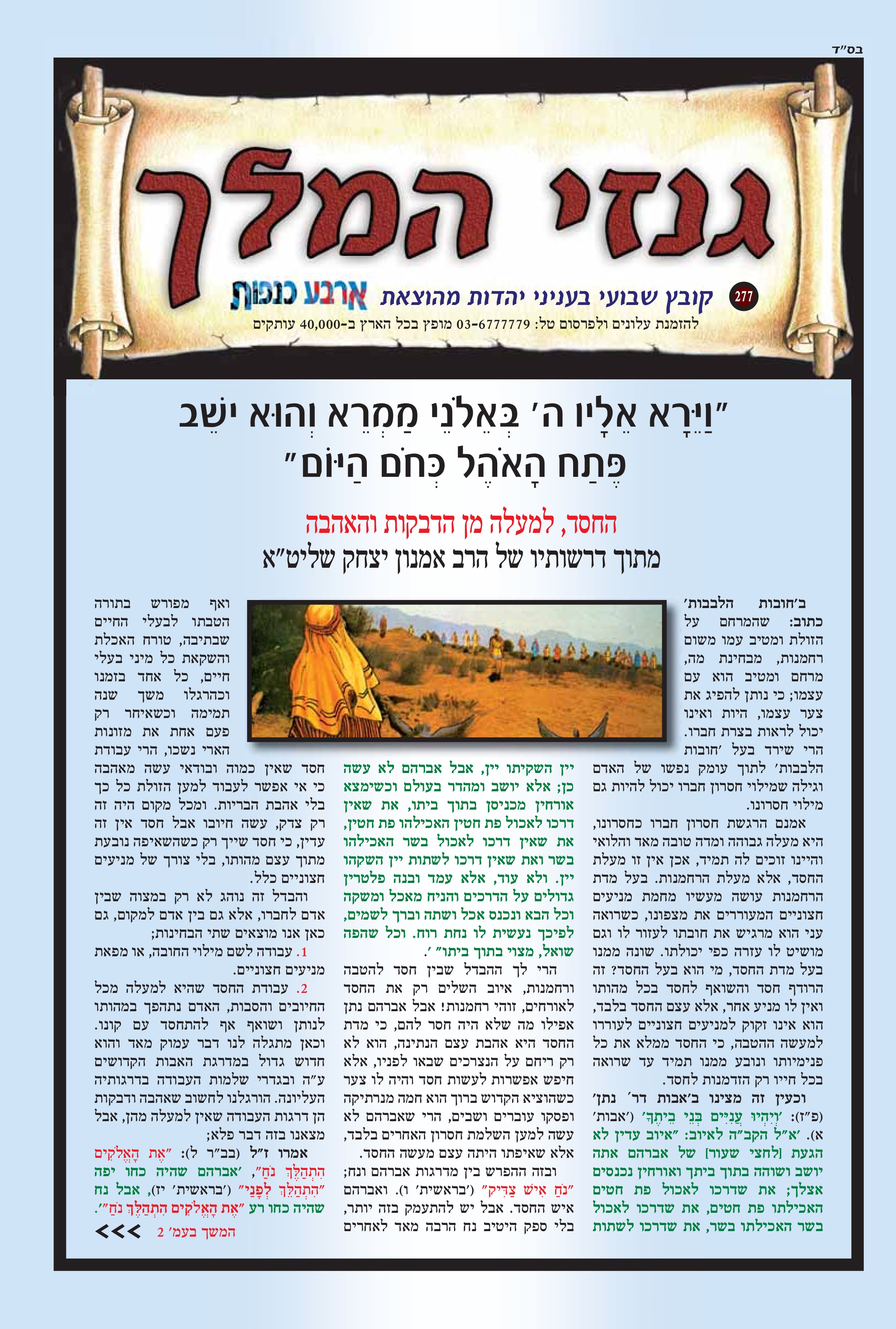 "וירא אליו ה' באלני ממרא והוא יושב פתח האהל כחם היום" החסד, למעלה מן הדבקות והאהבה