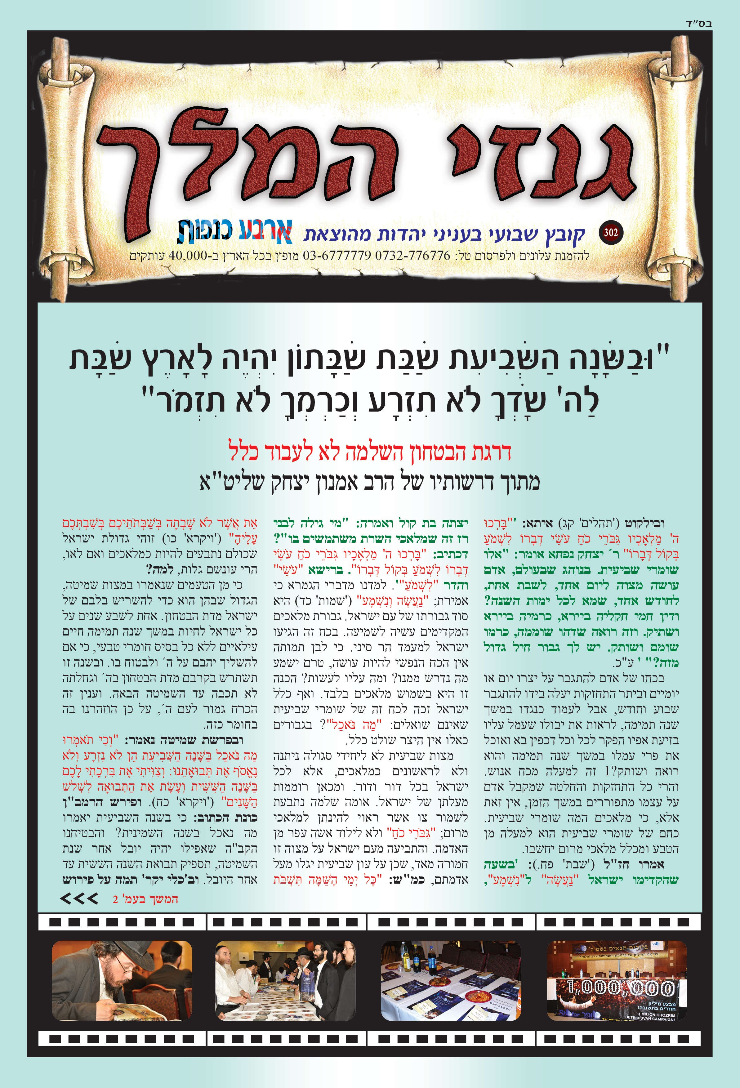 "ובשנה השביעית שבת שבתון יהיה לארץ שבת לה' שדך לא תזרע וכרמך לא תזמור" דרגת הבטחון השלמה לא לעבוד כלל