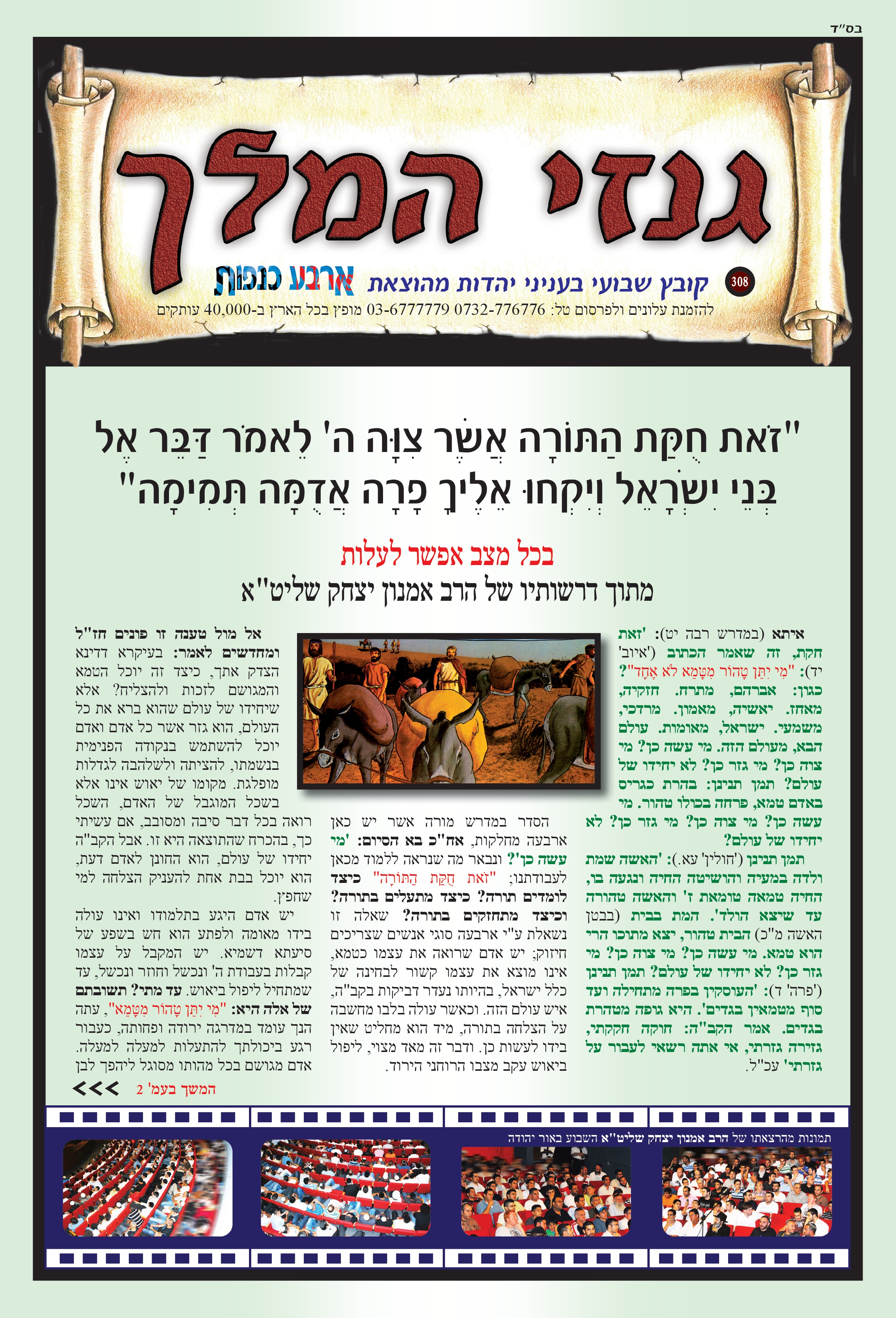 "זאת חקת התורה אשר ציוה ה' לאמר דבר אל נבי ישראל ויקחו אליך פרה אדומה תמימה" בכל מצב אפשר לעלות