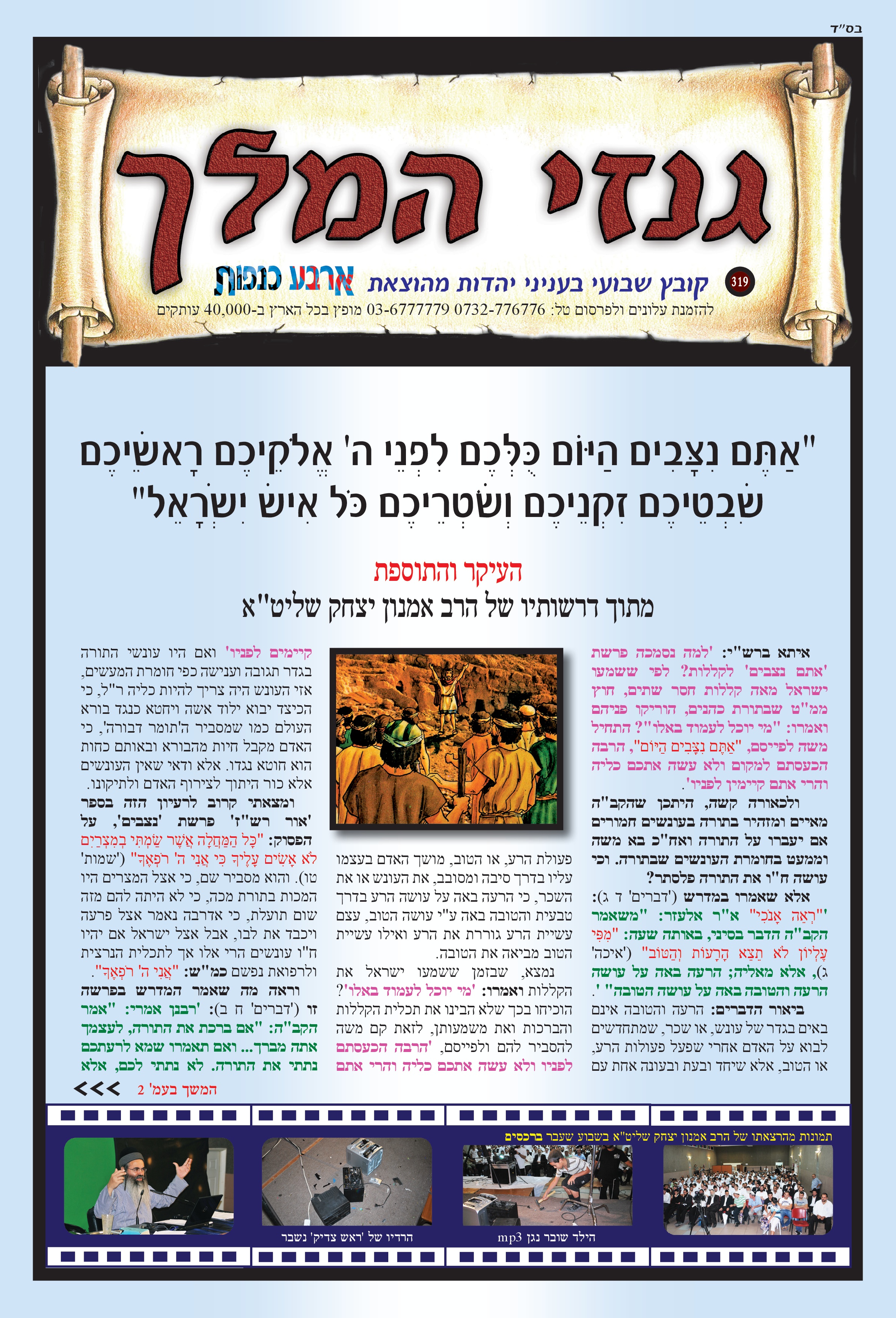 "אתם נצבים היום כלכם לפני ה' אלקיכם ראשיכם שבטיכם זקניכם ושטריכם כל איש ישראל" העיקר והתוספת