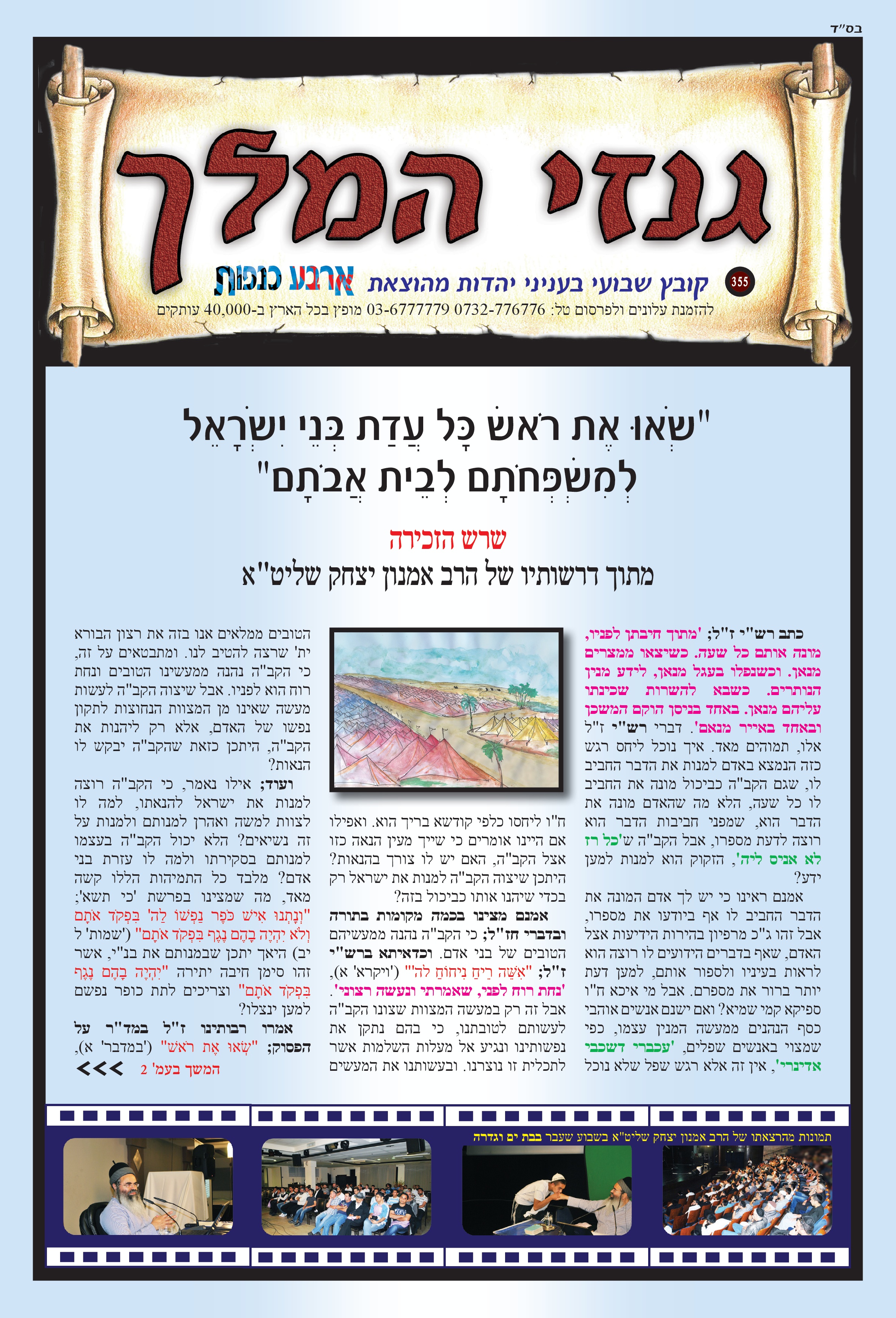 "שְׂאוּ אֶת רֹאשׁ כָּל עֲדַת בְּנֵי יִשְׂרָאֵל לְמִשְׁפְּחֹתָם לְבֵית אֲבֹתָם" שרש הזכירה