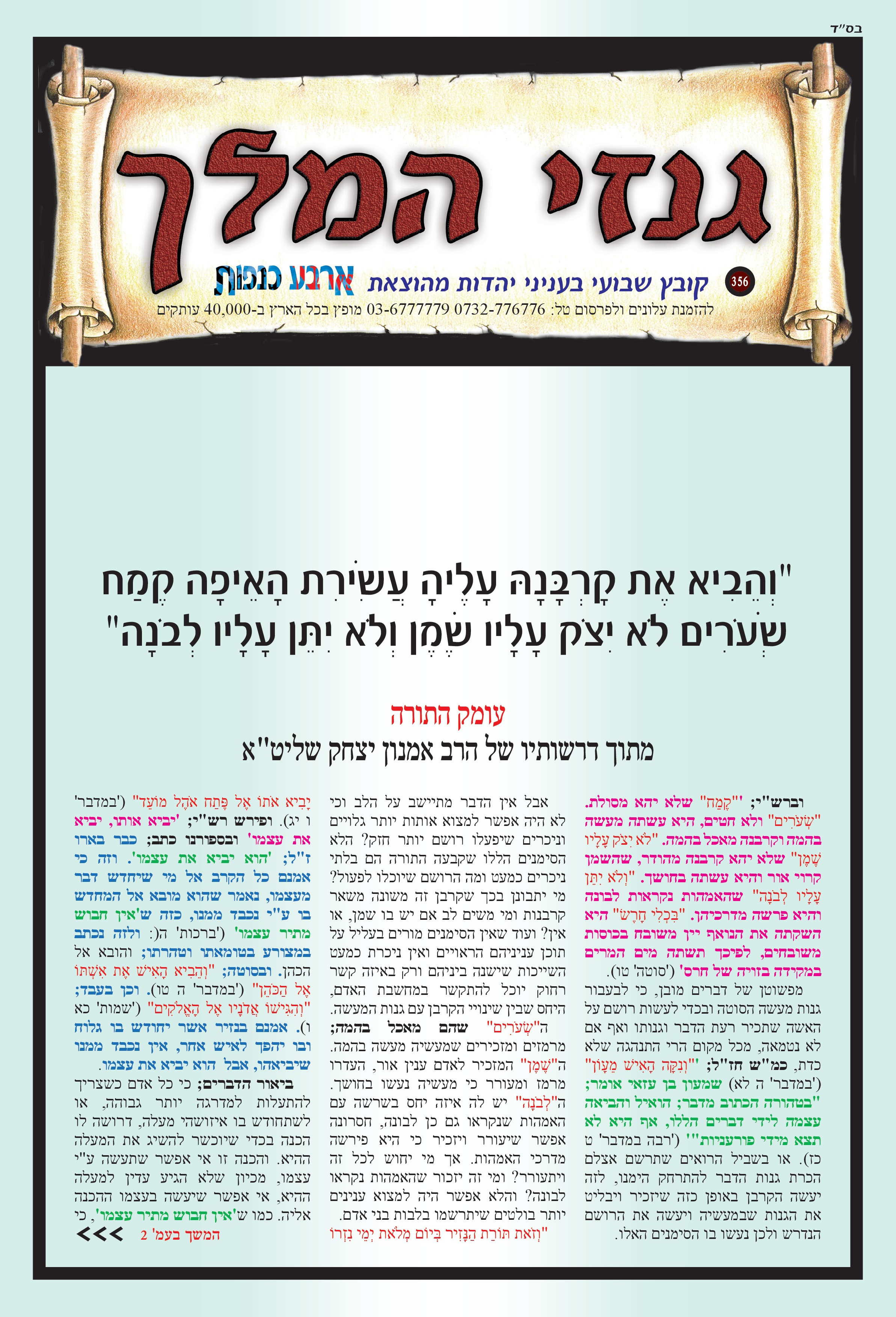 כבוד הרב, מאור עינינו, אין דף, עט ודיו היכולת להכיל את אשר ליבנו מבקש לומר. ב"ה בזכותכם רואים אנו עד כמה גדול אלוקי ישראל, כמה גדול אלוקי הרב אמנון יצחק, יה"ר שהשי"ת ישמרכם מכל מרעין בישין, וכל אויביכם שהם אויבי התורה הקדושה, שיפלו תחת רגליכם, אכי"ר. קשה ועצוב לראות את התופעה של קריעת מודעות, ואי אפשר להתרגל לכך. מר ממש. ואשרי הבחור שמדביק מחדש. כבוד הרב מלמד שאין אדם מלאך – אלא חצי אדם וחצי מלאך. אך כבוד הרב עצמו – אדם כמלאך. אתמול זכיתי למעט ביזיונות. שעת ניסיון קשה מאוד, אך ב"ה בזכותכם נשארתי שפויה לגמרי. יהי רצון שבזכות הבזיון שקבלתי ונתתי ברכת הדיוט למשפחה שהגיעה מרחוק לישועה – שיהיו להם בשורות טובות. בשורה משמחת נוספת, גיסי הניח ציצית ובירך, ואשתו ואנשים מסביב שמחו מאוד וענו אמן. ועוד כמה דברים יפים אירעו ביום שני. האוכל של א. מ. מטובל בטוב טעם ונדיבות, יה"ר שימשיכו ויצליחו, אמן. שוב אודה לכבוד הרב ולכל העמלים במלאכה – יהי רצון שהשם יתברך יגשים כל משאלות ליבכם לטובה. ותודה מיוחדת גם לרבנית היקרה, שאם לא אודה לה – הרי זו כפיות טובה ממש. ודבר אחרון היום בבוקר עברנו מהמקום, ששמו שלט ענק של מורינו והלב היה מלא שמחה לראות. יה"ר שנזכה ברחמים לקבל פני משיח צדקנו במהרה, אמן.