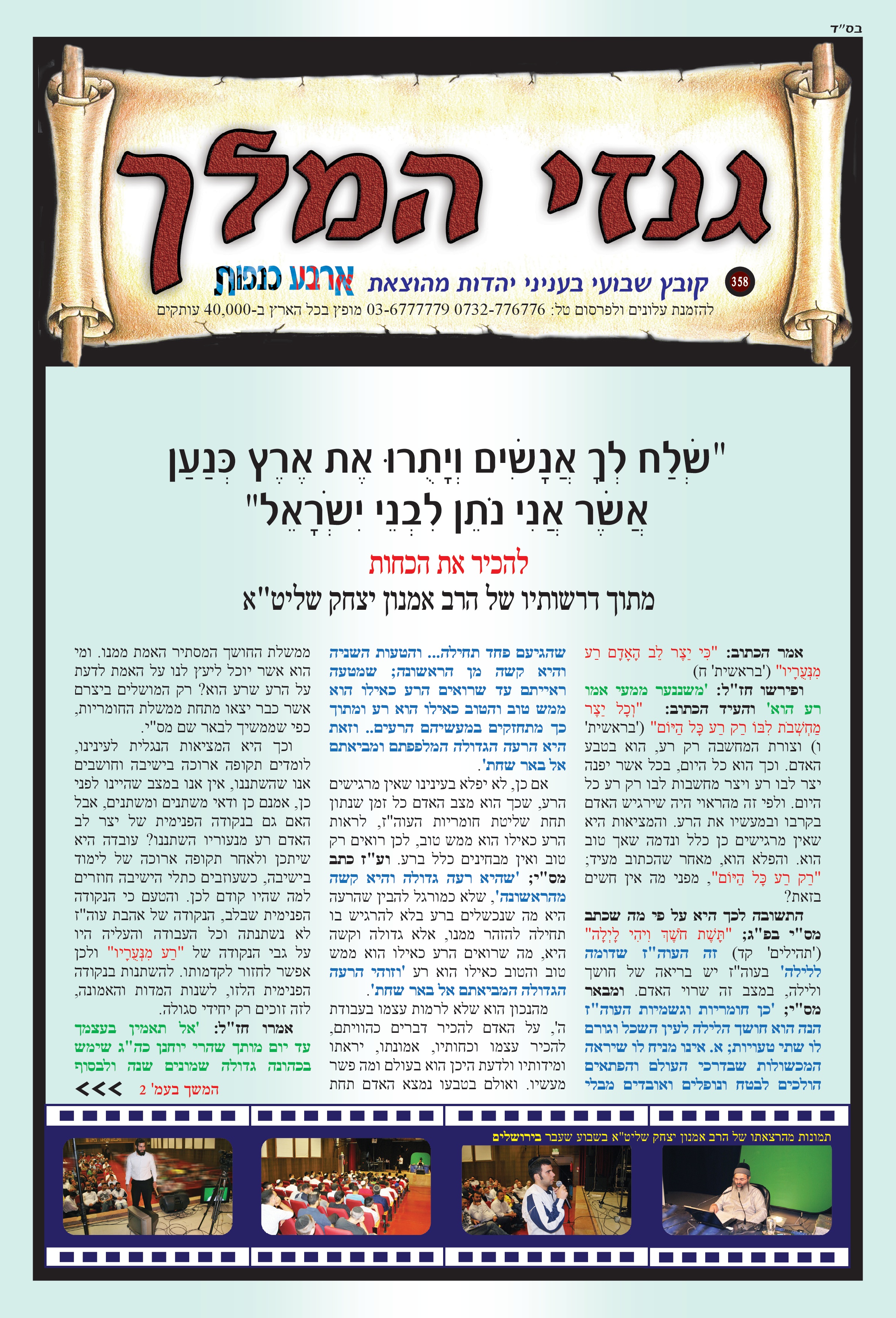 כבוד הרב, מאור עינינו, אין דף, עט ודיו היכולת להכיל את אשר ליבנו מבקש לומר. ב"ה בזכותכם רואים אנו עד כמה גדול אלוקי ישראל, כמה גדול אלוקי הרב אמנון יצחק, יה"ר שהשי"ת ישמרכם מכל מרעין בישין, וכל אויביכם שהם אויבי התורה הקדושה, שיפלו תחת רגליכם, אכי"ר. קשה ועצוב לראות את התופעה של קריעת מודעות, ואי אפשר להתרגל לכך. מר ממש. ואשרי הבחור שמדביק מחדש. כבוד הרב מלמד שאין אדם מלאך – אלא חצי אדם וחצי מלאך. אך כבוד הרב עצמו – אדם כמלאך. אתמול זכיתי למעט ביזיונות. שעת ניסיון קשה מאוד, אך ב"ה בזכותכם נשארתי שפויה לגמרי. יהי רצון שבזכות הבזיון שקבלתי ונתתי ברכת הדיוט למשפחה שהגיעה מרחוק לישועה – שיהיו להם בשורות טובות. בשורה משמחת נוספת, גיסי הניח ציצית ובירך, ואשתו ואנשים מסביב שמחו מאוד וענו אמן. ועוד כמה דברים יפים אירעו ביום שני. האוכל של א. מ. מטובל בטוב טעם ונדיבות, יה"ר שימשיכו ויצליחו, אמן. שוב אודה לכבוד הרב ולכל העמלים במלאכה – יהי רצון שהשם יתברך יגשים כל משאלות ליבכם לטובה. ותודה מיוחדת גם לרבנית היקרה, שאם לא אודה לה – הרי זו כפיות טובה ממש. ודבר אחרון היום בבוקר עברנו מהמקום, ששמו שלט ענק של מורינו והלב היה מלא שמחה לראות. יה"ר שנזכה ברחמים לקבל פני משיח צדקנו במהרה, אמן.