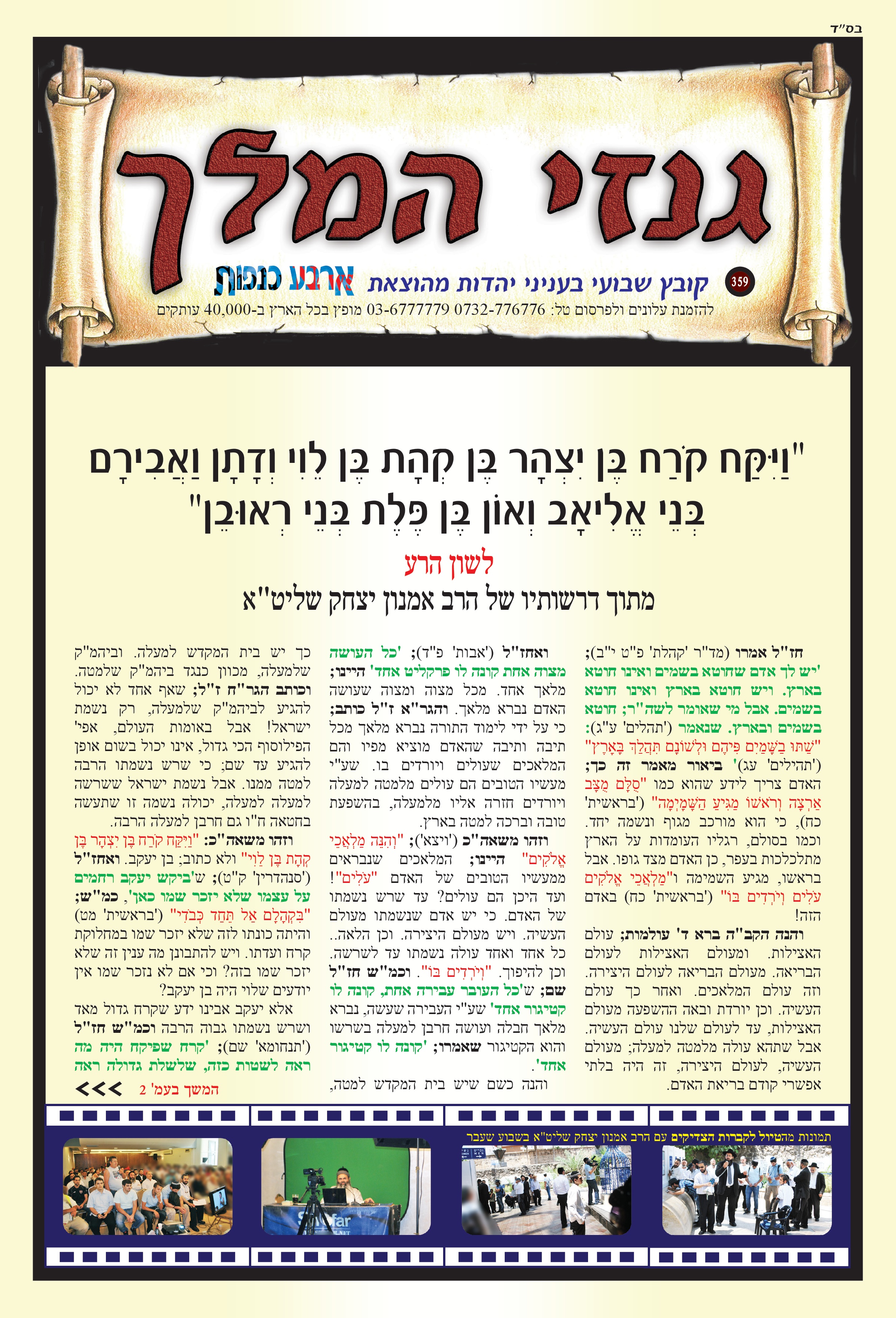 "וַיִּקַּח קֹרַח בֶּן יִצְהָר בֶּן קְהָת בֶּן לֵוִי וְדָתָן וַאֲבִירָם בְּנֵי אֱלִיאָב וְאוֹן בֶּן פֶּלֶת בְּנֵי רְאוּבֵן" לשון הרע