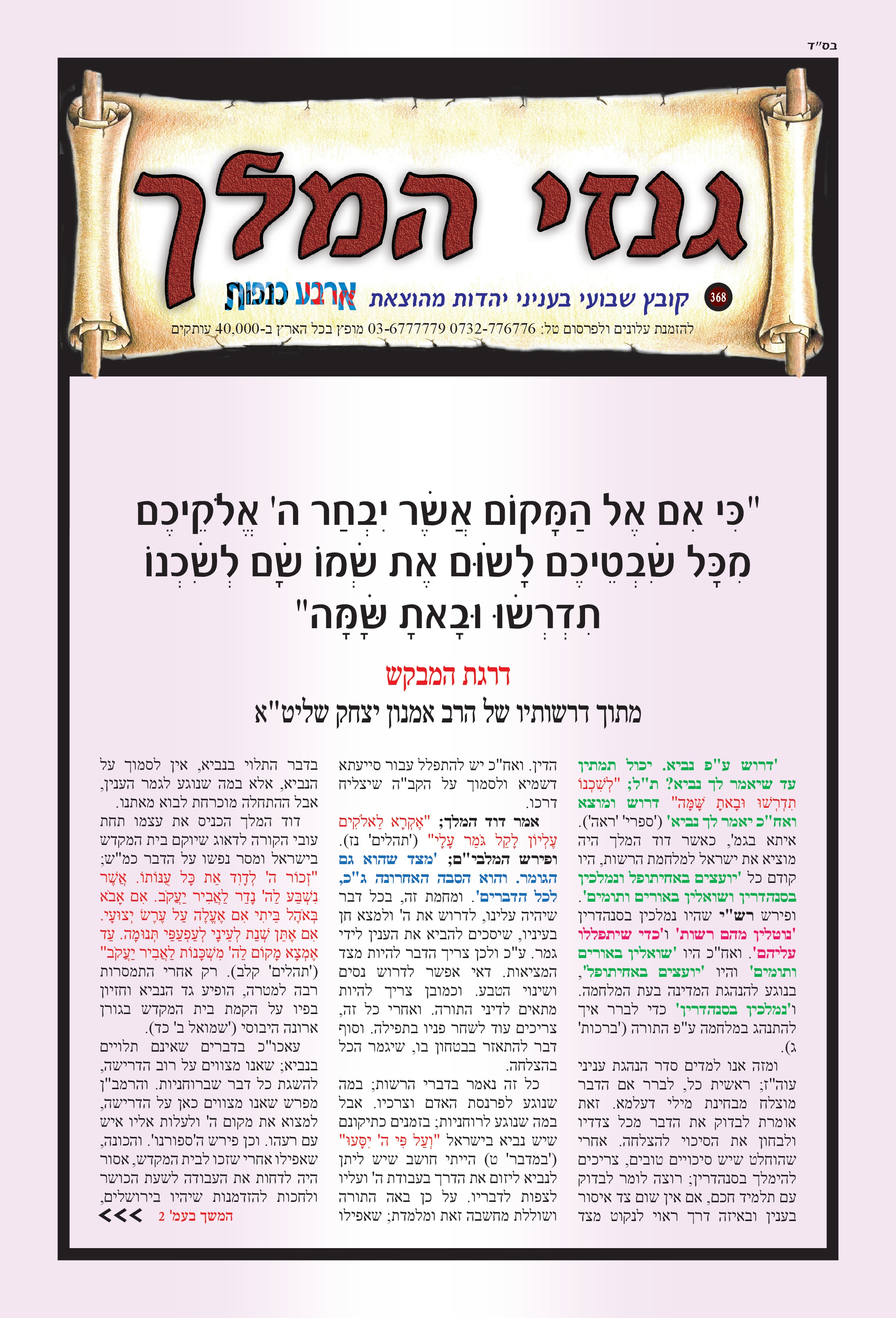 "כִּי אִם אֶל הַמָּקוֹם אֲשֶׁר יִבְחַר יְהוָה אֱלֹהֵיכֶם מִכָּל שִׁבְטֵיכֶם לָשׂוּם אֶת שְׁמוֹ שָׁם לְשִׁכְנוֹ תִדְרְשׁוּ וּבָאתָ שָׁמָּה" דרגת המבקש