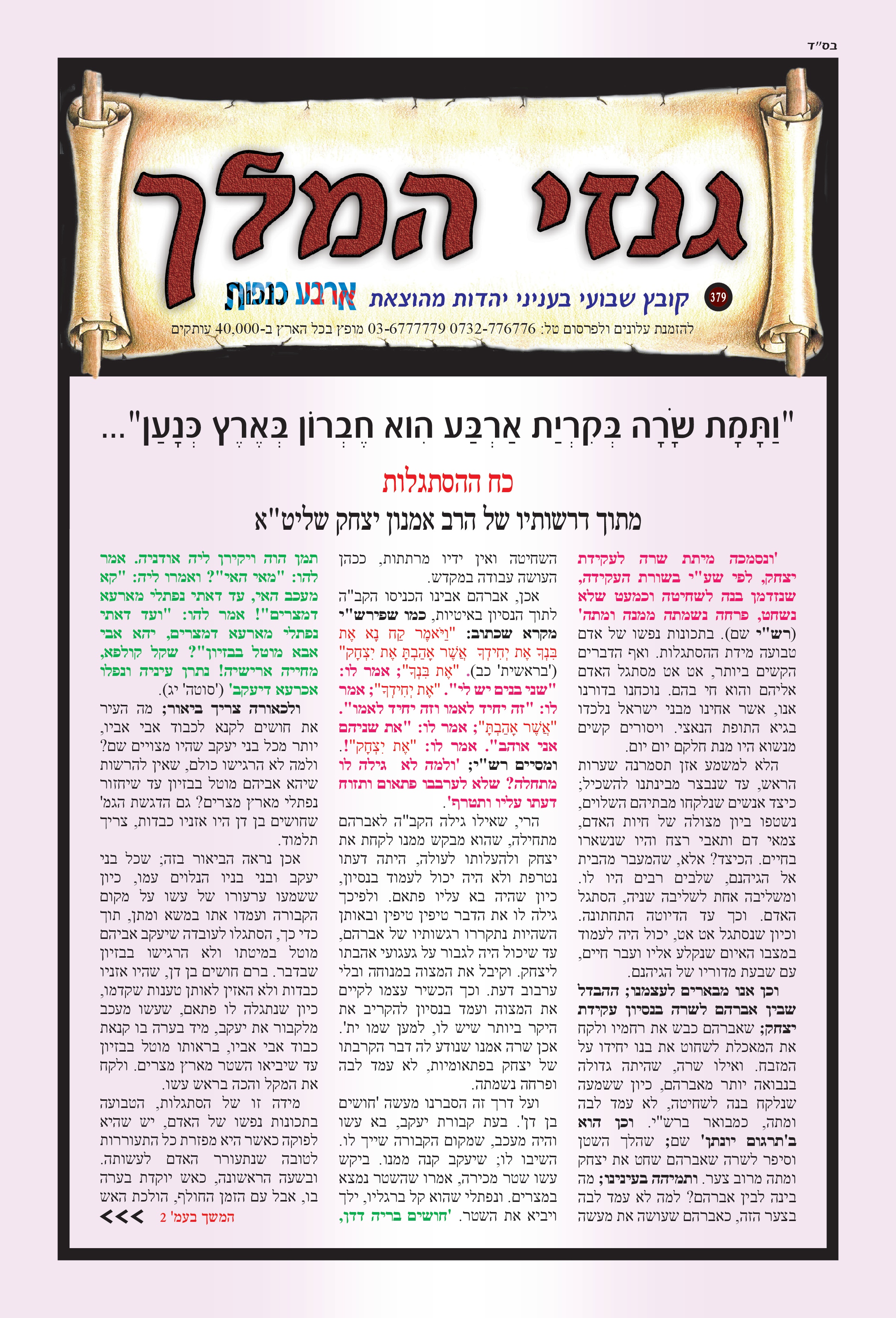 פרשת חיי שרה "עקב אשר שמע אברהם בקולי וישמר משמרתי..." זמרן ויקשן יובל ותובל