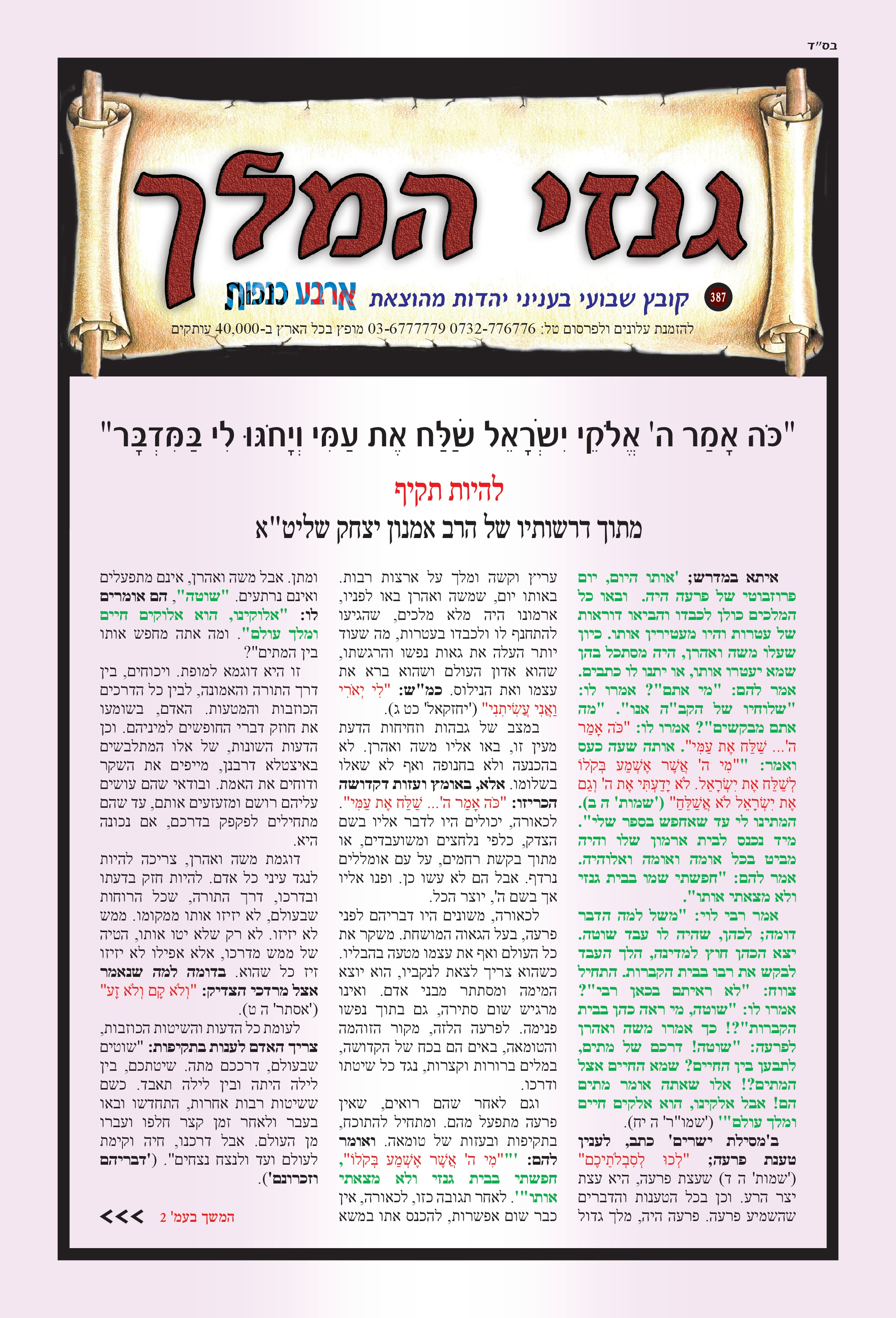 "כֹּה אָמַר ה' אֱלֹקי יִשְׂרָאֵל שַׁלַּח אֶת עַמִּי וְיָחֹגּוּ לִי בַּמִּדְבָּר" להיות תקיף