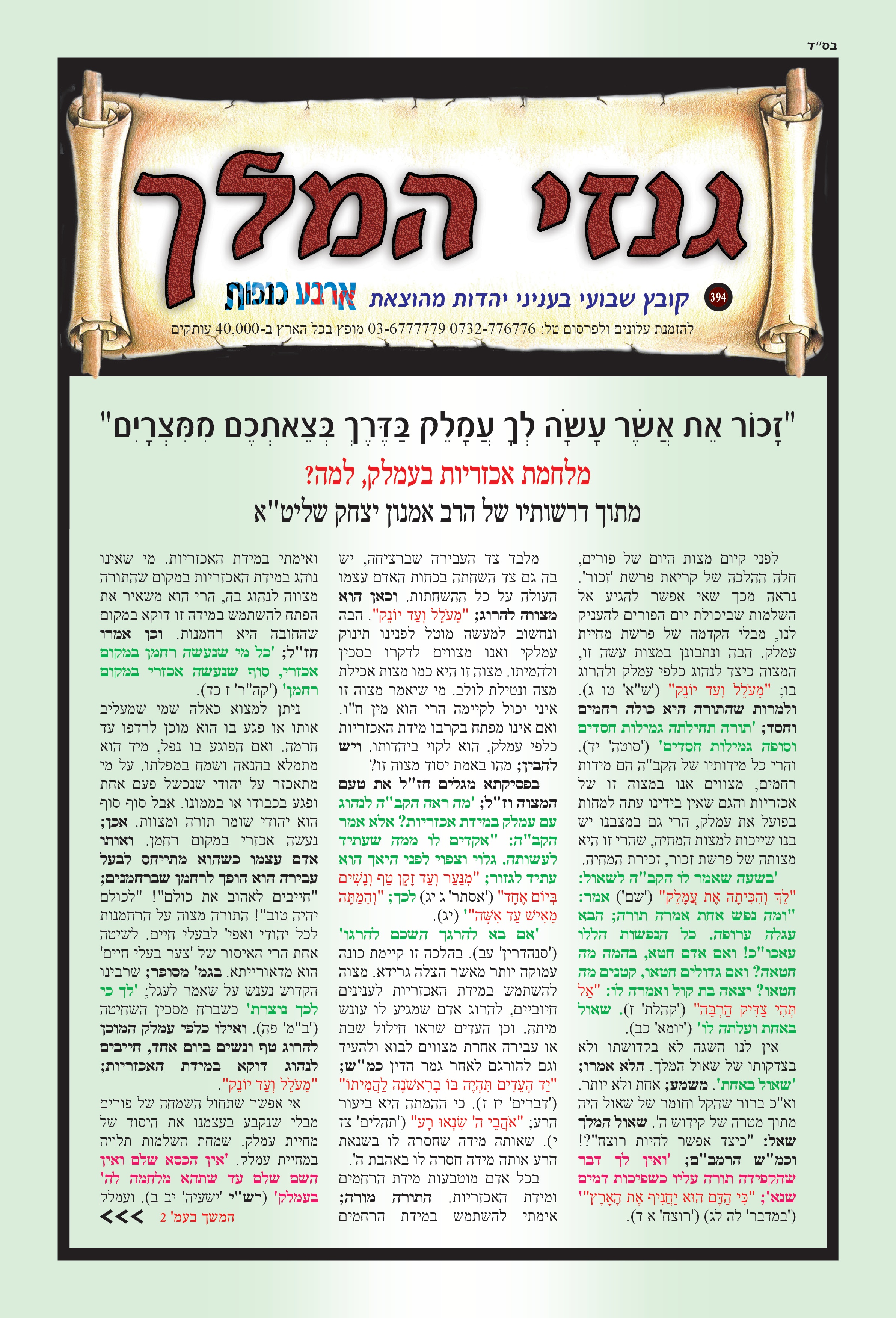 פרשת תצוה ' "אית בהו רבנן". אמר ליה: "עם אחד הן" לשון הרע של המן