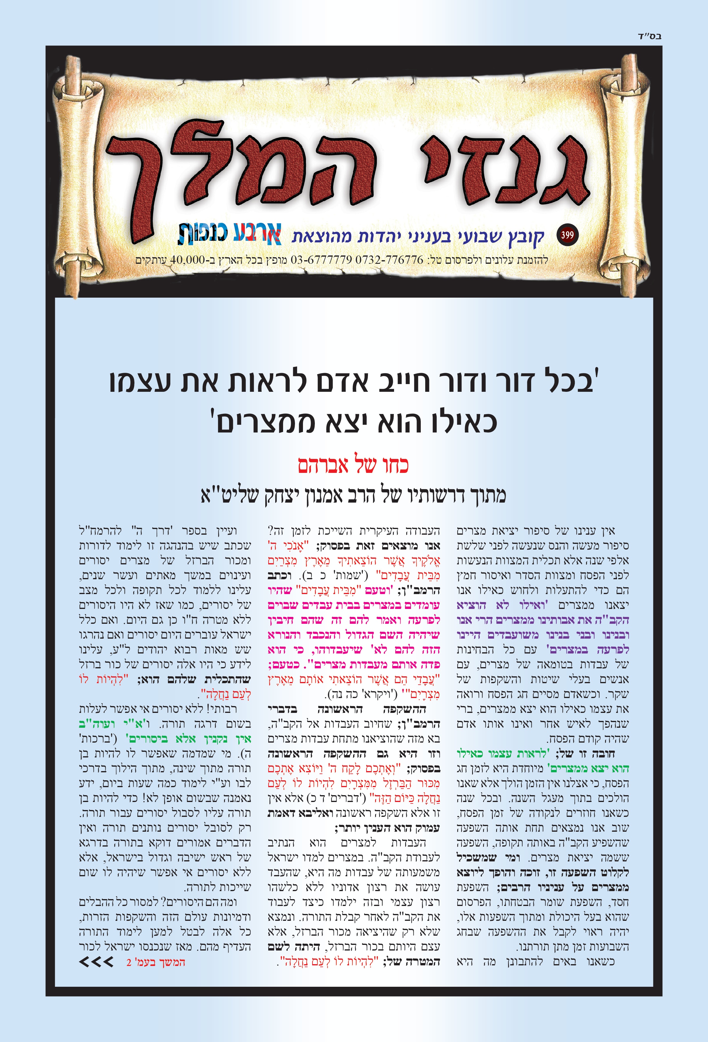 בכל דור ודור חייב אדם לראות את עצמו כאילו הוא יצא ממצרים' כחו של אברהם