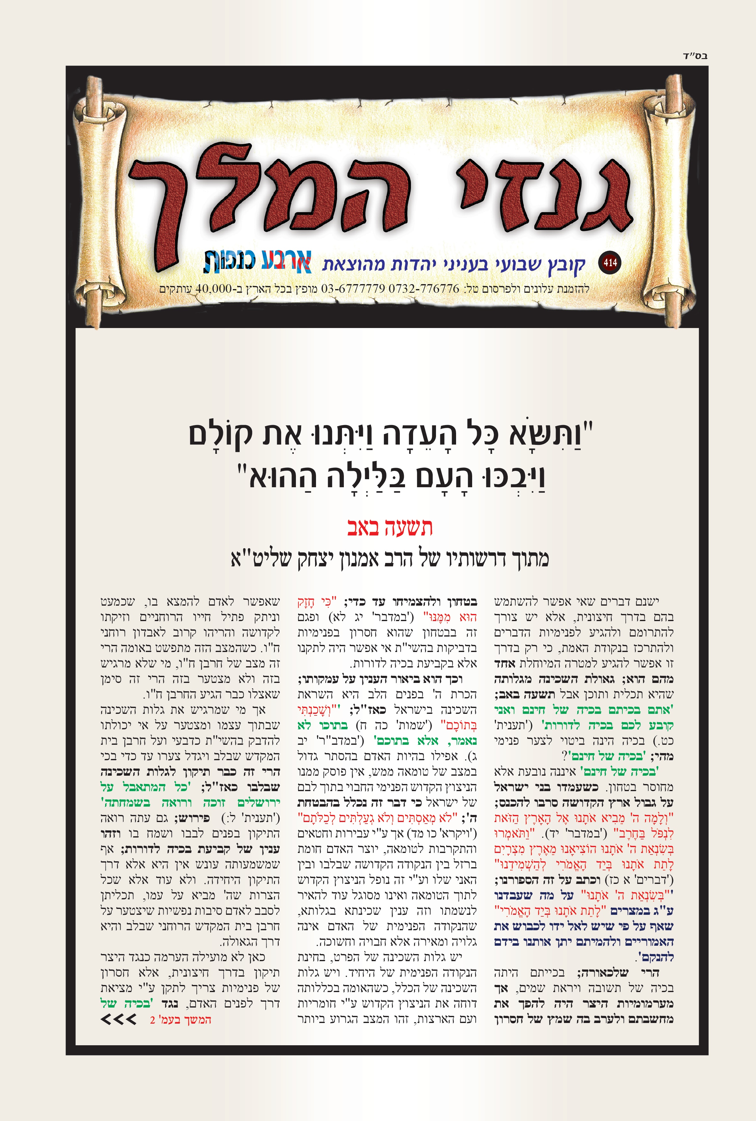 "וַתִּשָּׂא כָּל הָעֵדָה וַיִּתְּנוּ אֶת קוֹלָם וַיִּבְכּוּ הָעָם בַּלַּיְלָה הַהוּא" תשעה באב