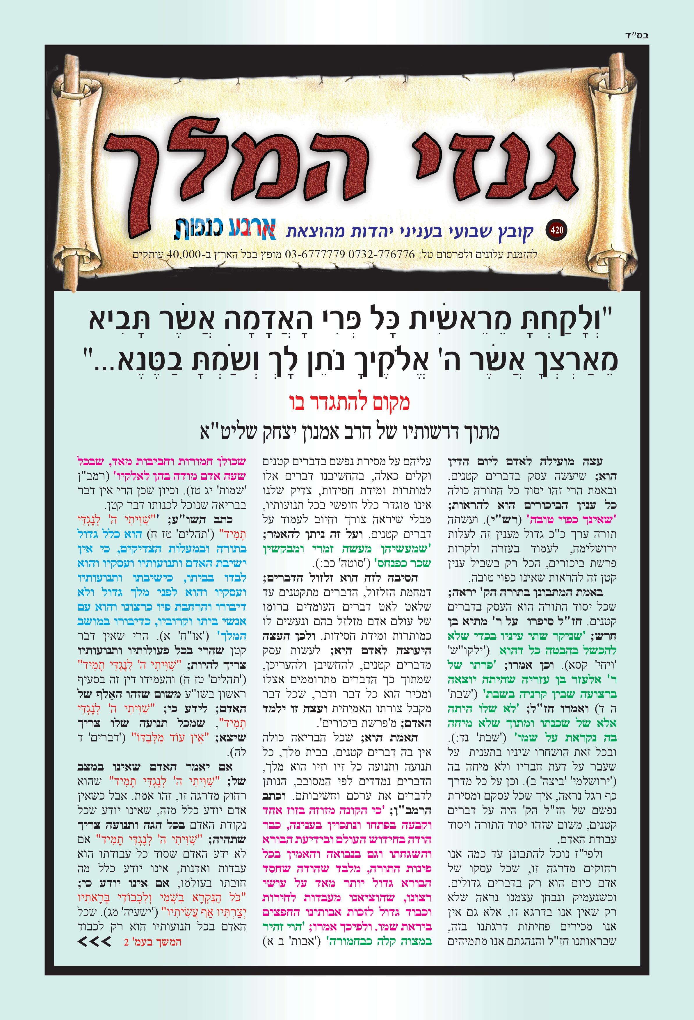 "וְלָקַחְתָּ מֵרֵאשִׁית כָּל פְּרִי הָאֲדָמָה אֲשֶׁר תָּבִיא מֵאַרְצְךָ אֲשֶׁר ה' אלקיך נֹתֵן לָךְ וְשַׂמְתָּ בַטֶּנֶא" מקום להתגדר בו