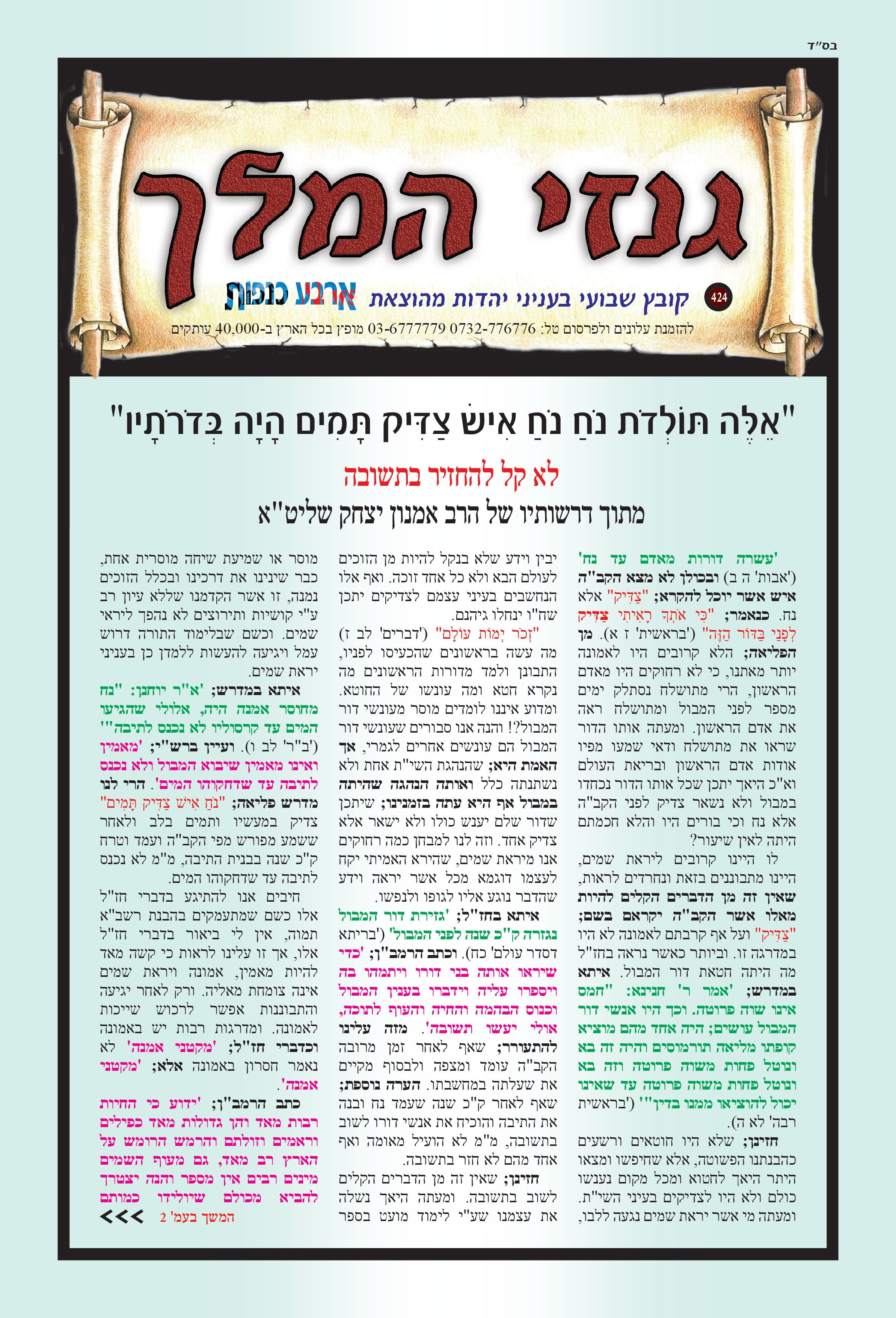 "אֵלֶּה תּוֹלְדֹת נֹחַ נֹחַ אִישׁ צַדִּיק תָּמִים הָיָה בְּדֹרֹתָיו " לא קל להחזיר בתשובה