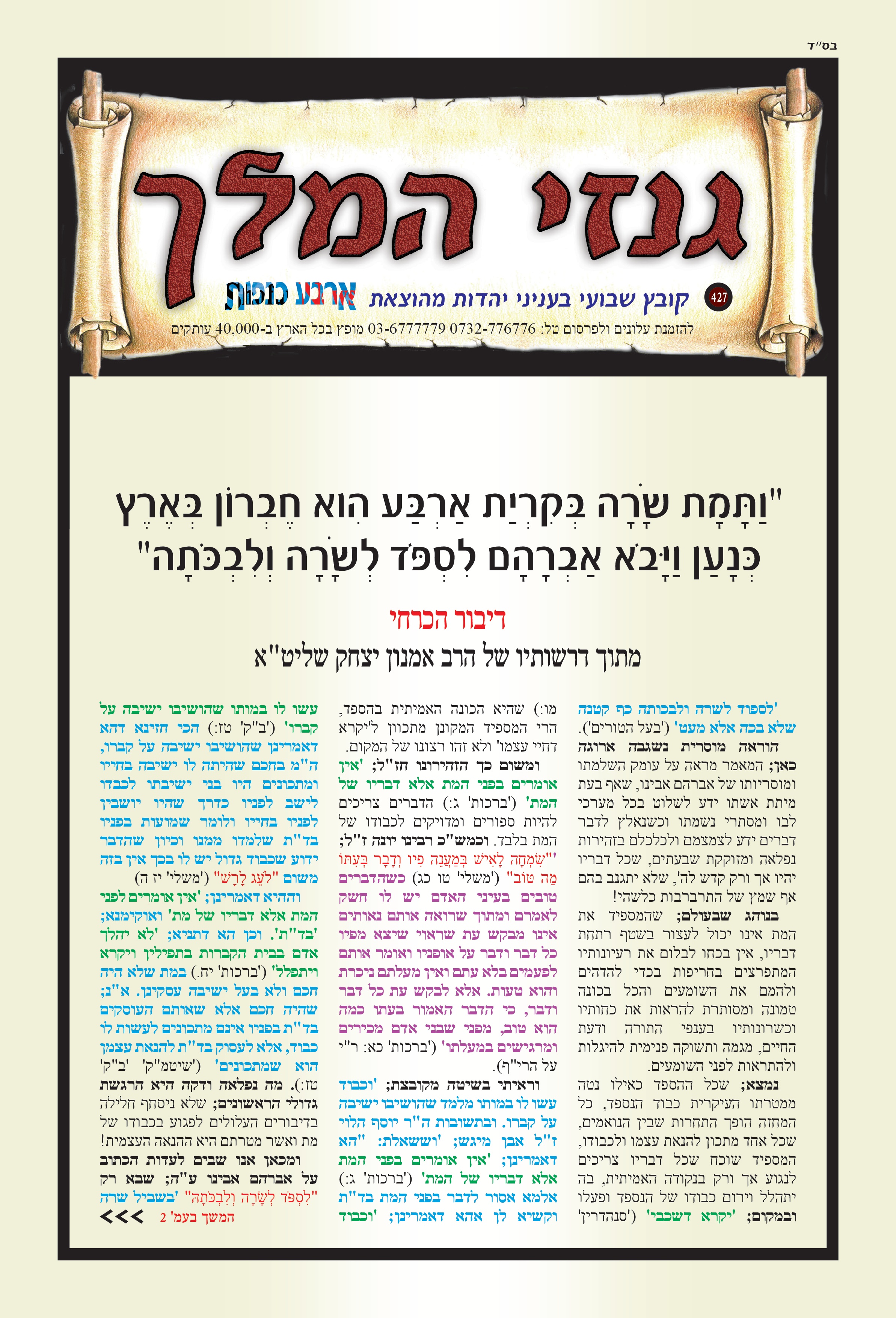 "וַתָּמָת שָׂרָה בְּקִרְיַת אַרְבַּע הִוא חֶבְרוֹן בְּאֶרֶץ כְּנָעַן וַיָּבֹא אַבְרָהָם לִסְפֹּד לְשָׂרָה וְלִבְכֹּתָהּ" דיבור הכרחי